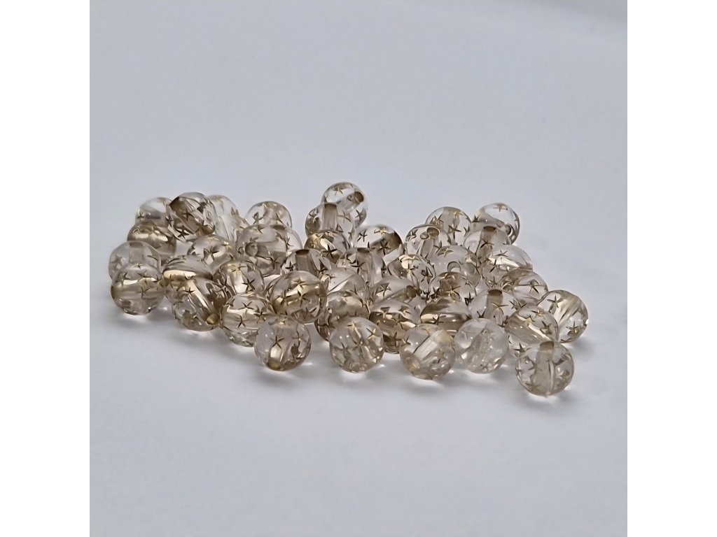Akrylové korálky 8 mm – transparentní se zlatými hvězdičkami