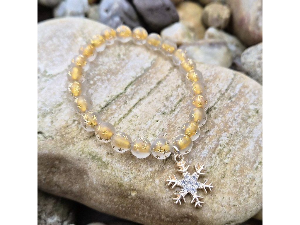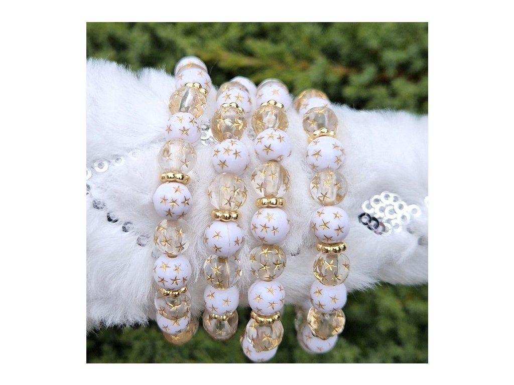Kvalitní akrylové korálky v kulatém provedení o průměru 8 mm zaujmou svým jemně průhledným vzhledem a elegantním zlatým dekorem ve tvaru drobných hvězdiček. Díky lesklému povrchu a třpytivému efektu působí luxusně, přesto si zachovávají lehkost a hravost.