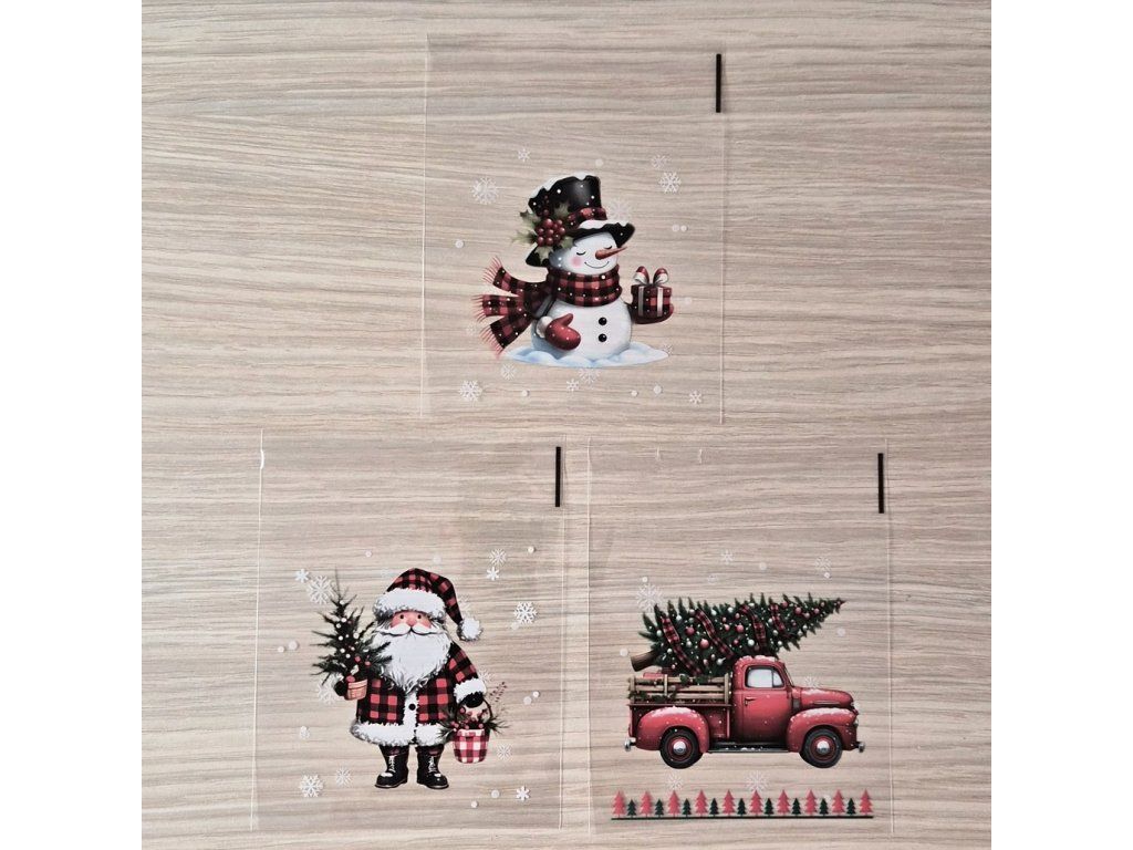 Motiv: vánoční – věnec, Santa, sněhulák, srneček, auto