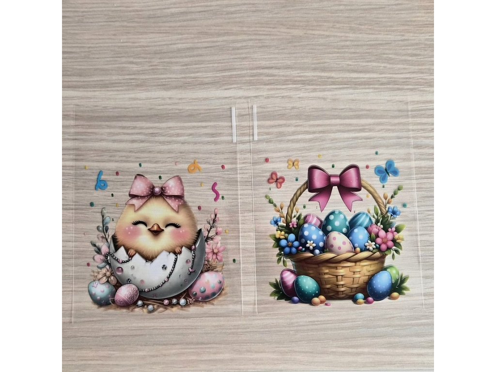 Průhledný sáček s roztomilým velikonočním potiskem je ideální pro balení drobných dárků, šperků nebo sladkostí. Veselý motiv s kuřátkem ve skořápce a košíkem plným barevných vajíček dodá balení hravý a sváteční vzhled.