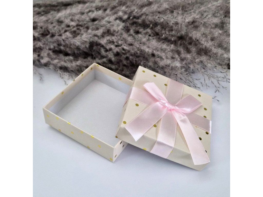 Dárková krabička 10 × 10 × 3 cm – růžová se zlatými puntíky a růžovou stuhou