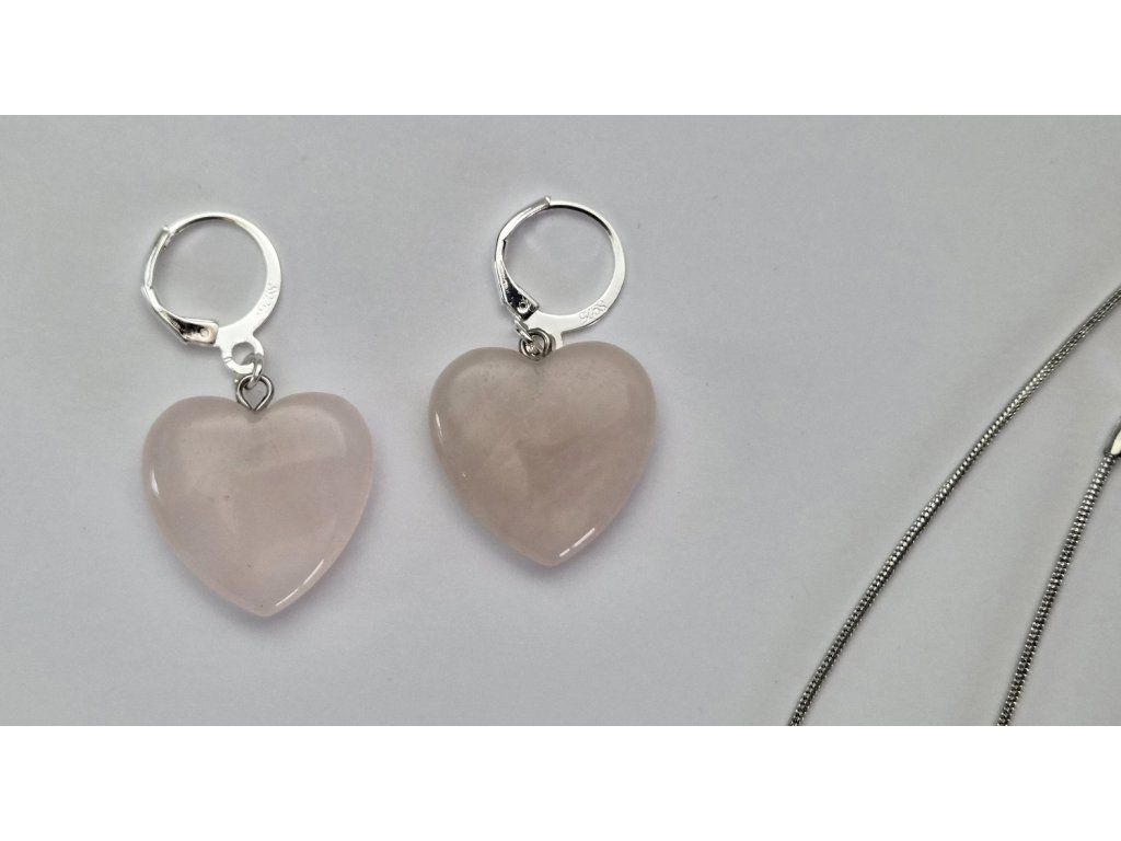 Dominantou setu jsou jemně broušená srdce z přírodního růženínu v něžném světle růžovém odstínu. Růženín se vyznačuje typickou mléčně průsvitnou strukturou a přirozenou kresbou, díky níž je každý kus originál.
