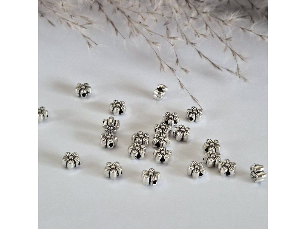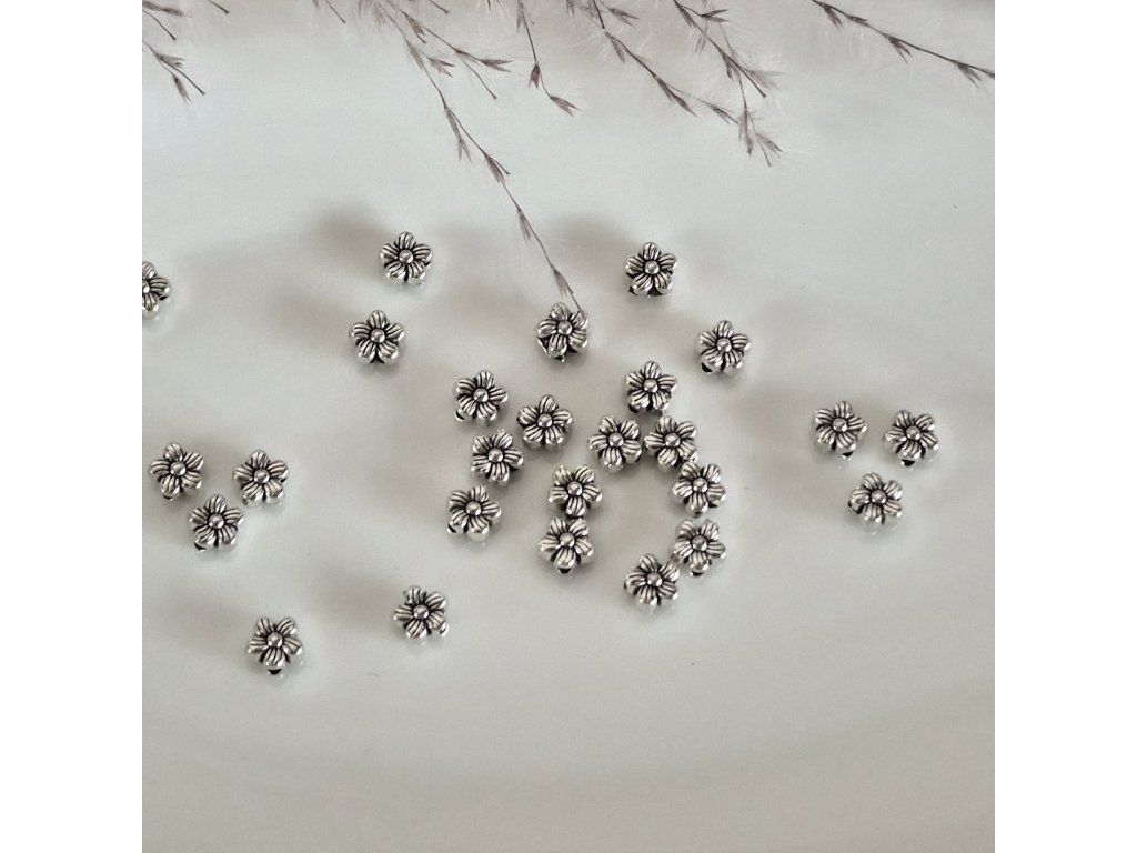 Dekorativní kovové korálky ve tvaru květiny vyrobené z lehké hliníkové slitiny. Jemný reliéf okvětních lístků dodává korálkům elegantní vintage vzhled a dělá z nich krásný prvek pro výrobu šperků.