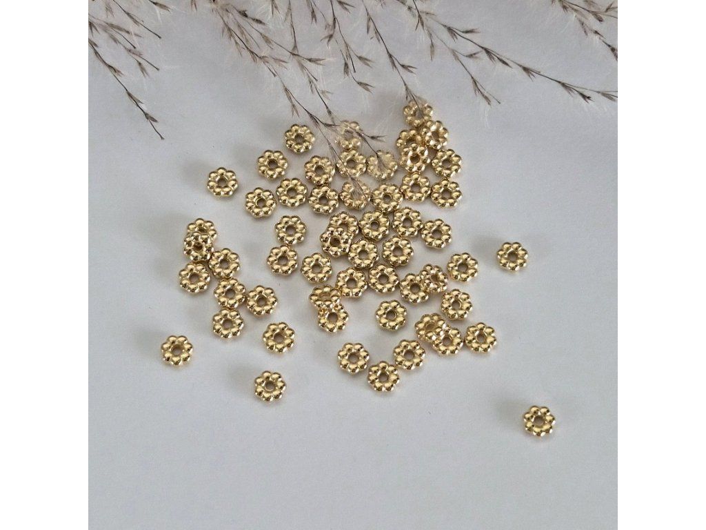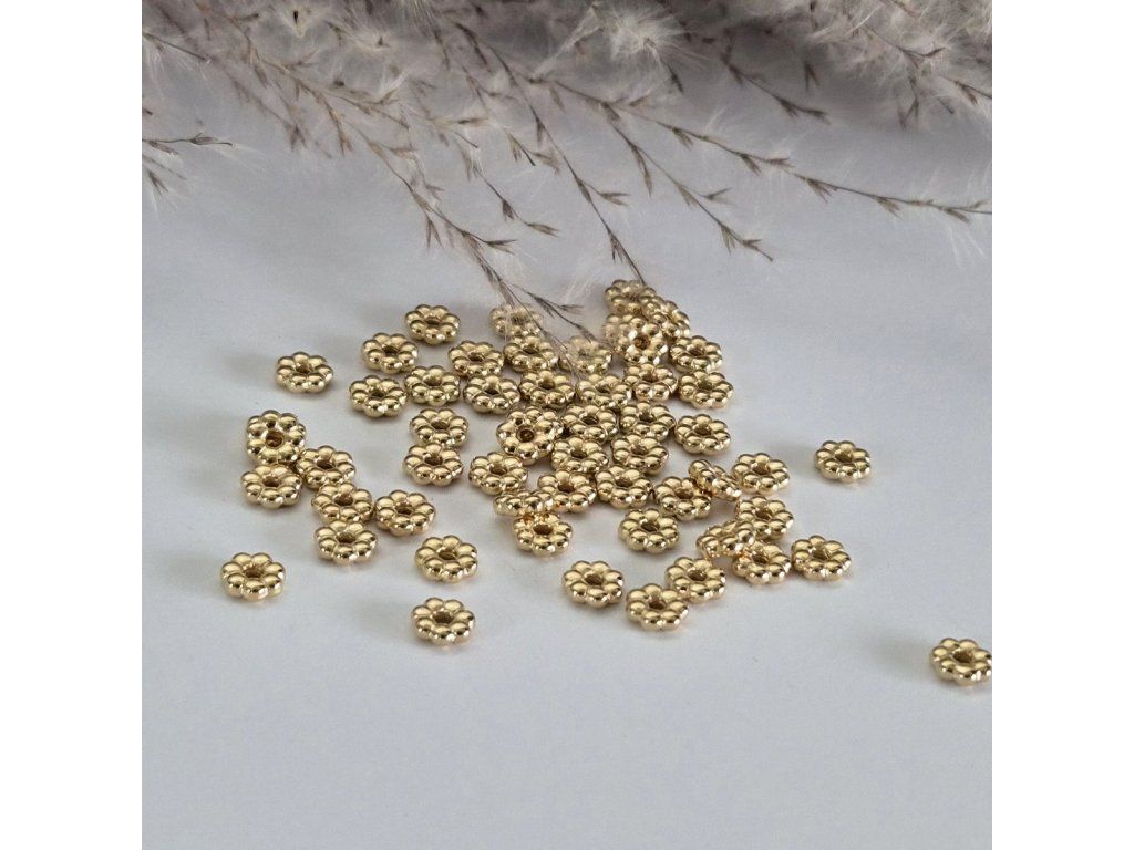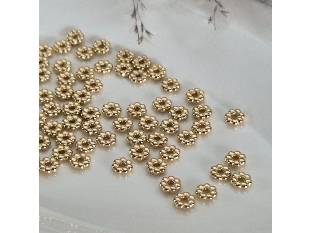 Dekorativní distanční korálky z akrylu ve tvaru sněhové vločky v elegantní zlaté barvě. Díky svému jemnému designu jsou ideální jako oddělovací prvek mezi korálky a dodávají šperkům zajímavý a stylový vzhled.