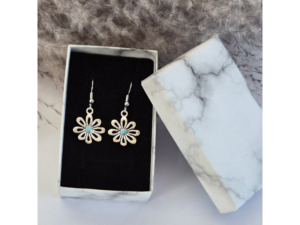 Elegantní náušnice – květinový motiv se světle modrým středem