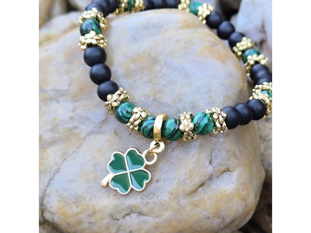 kombinace přírodního malachitu a matného achátu