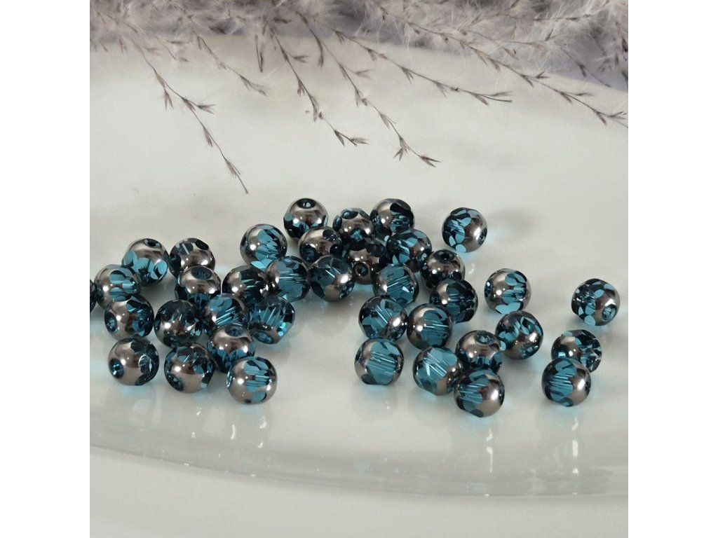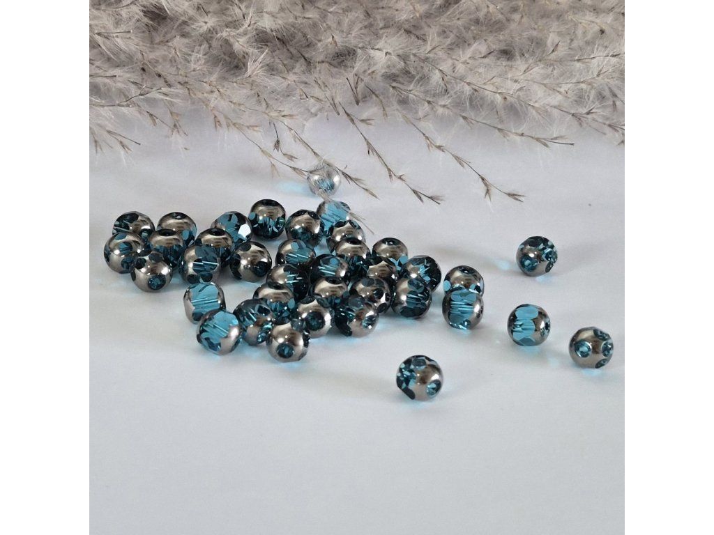Fasetované skleněné korálky – 8 mm (tyrkysovo-stříbrné)