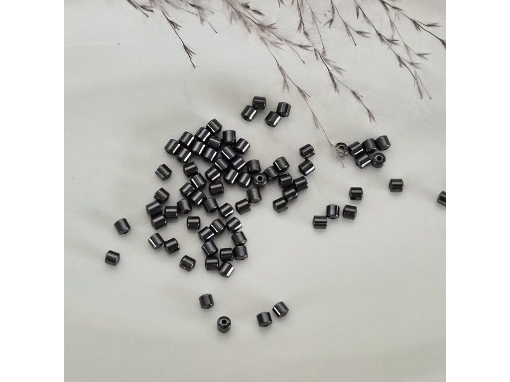 Elegantní hematitové korálky ve tvaru malého sloupku, které vynikají svým tmavým kovovým leskem. Díky své drobné velikosti jsou ideální jako doplňkové korálky pro jemné šperky nebo jako oddělovací prvek mezi většími korálky.