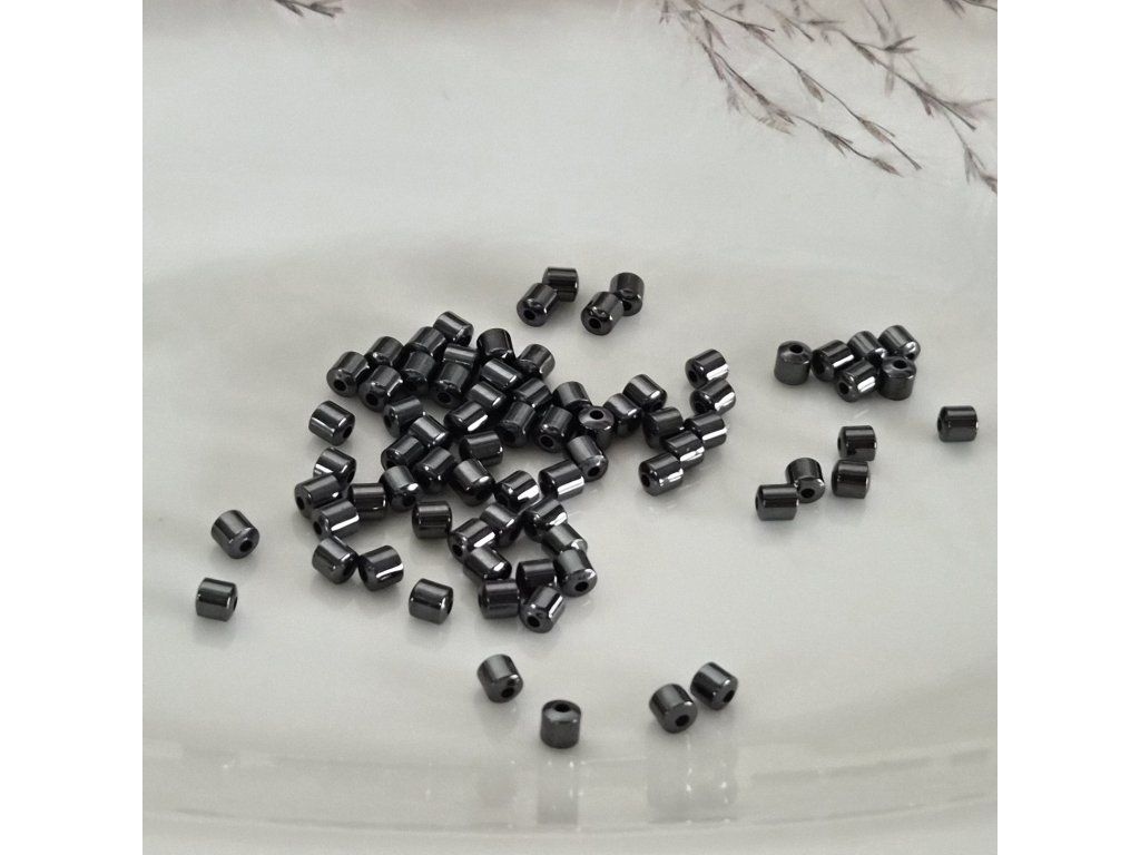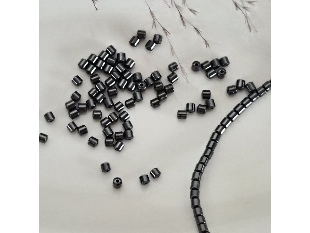 Hematitové sloupové korálky – černé, 3 × 3 mm