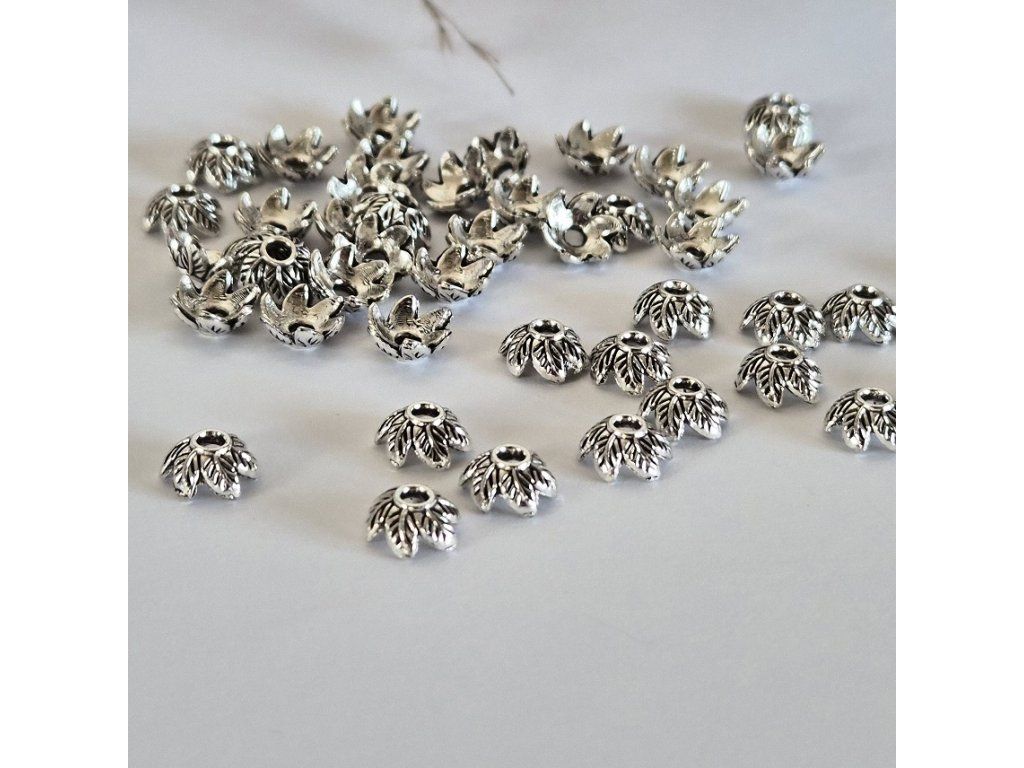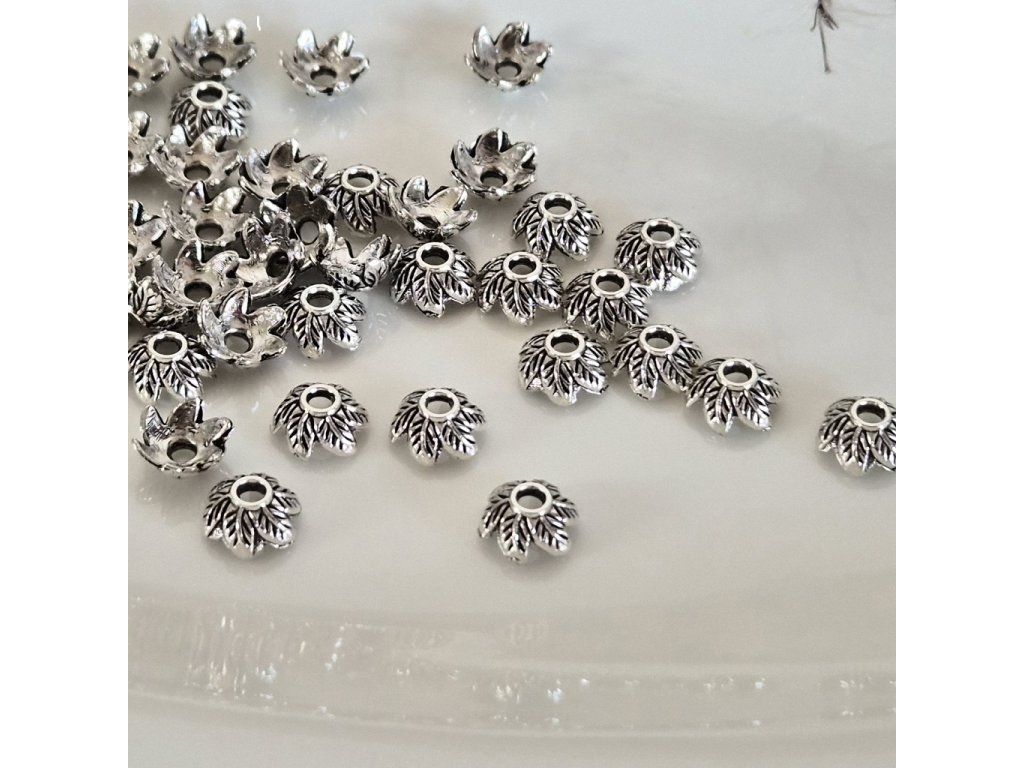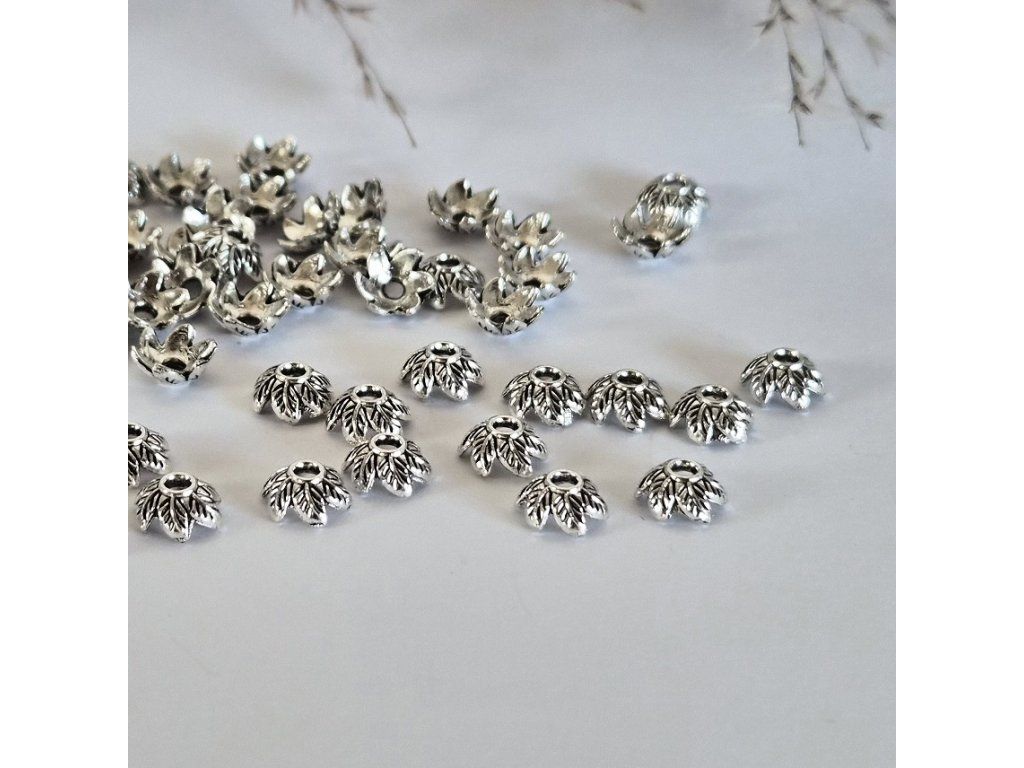 Kaplíky na korálky - tvar květu - stříbrná barva - 10 ks