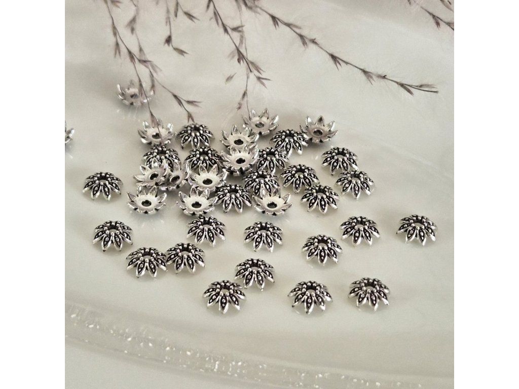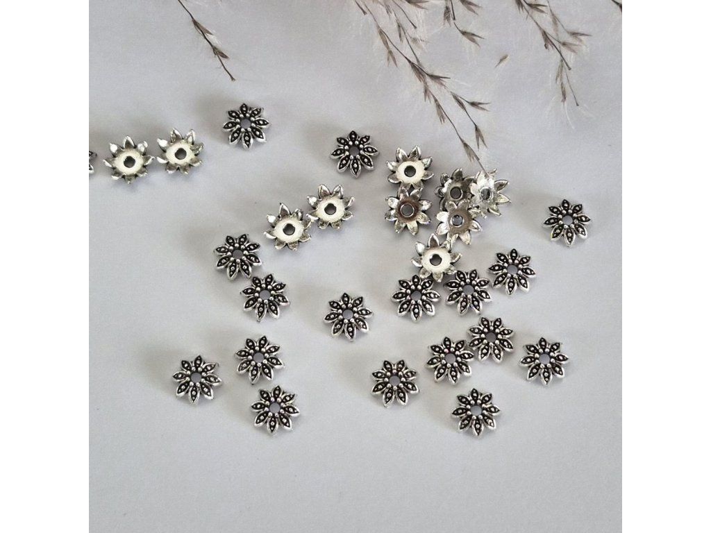 Kaplíky na korálky - tvar květu - stříbrná barva - 10 ks