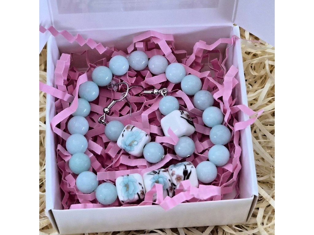 Korálkový set z – přírodní amazonit & porcelán - ø 8 mm
