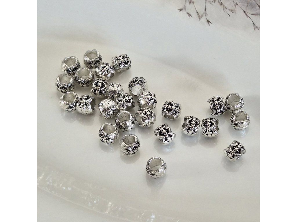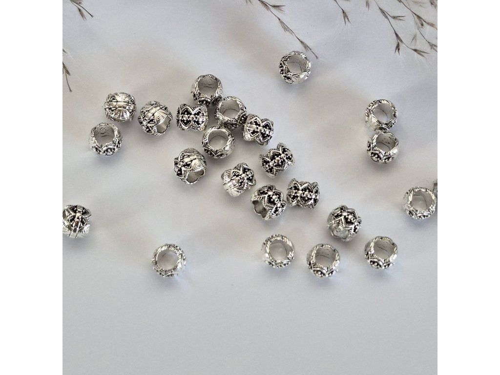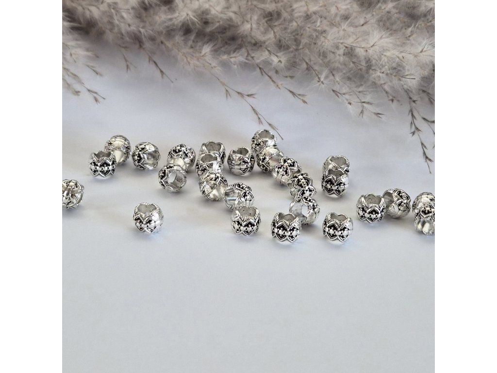 Zdobený kovový korálek ve stříbrné barvě je ideálním doplňkem pro každého, kdo chce svým šperkům dodat osobitý a detailně propracovaný vzhled.