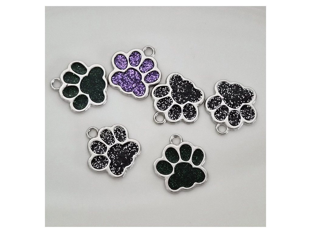 Kovový přívěsek – tlapka s třpytivou výplní