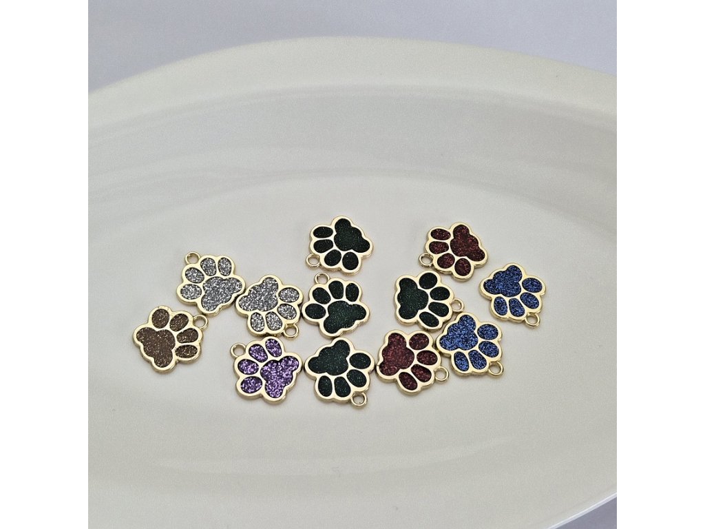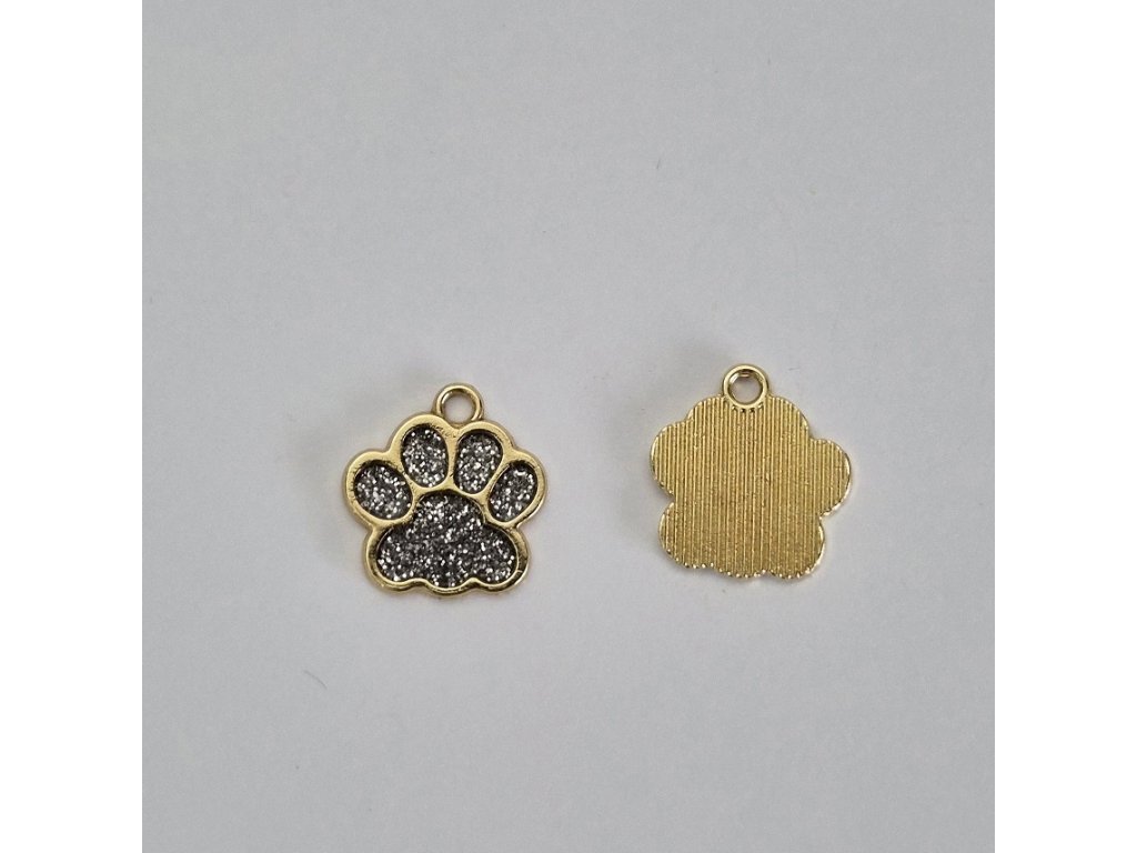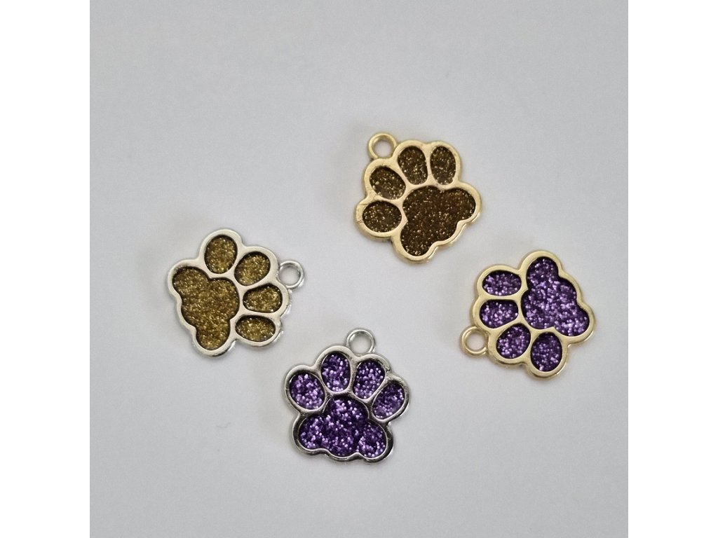 Stylový kovový přívěsek ve tvaru zvířecí tlapky je ideální pro výrobu šperků i doplňků pro milovníky zvířat. Vnitřní část je vyplněna třpytivou glitrovou pryskyřicí, která dodává přívěsku výrazný a hravý vzhled.