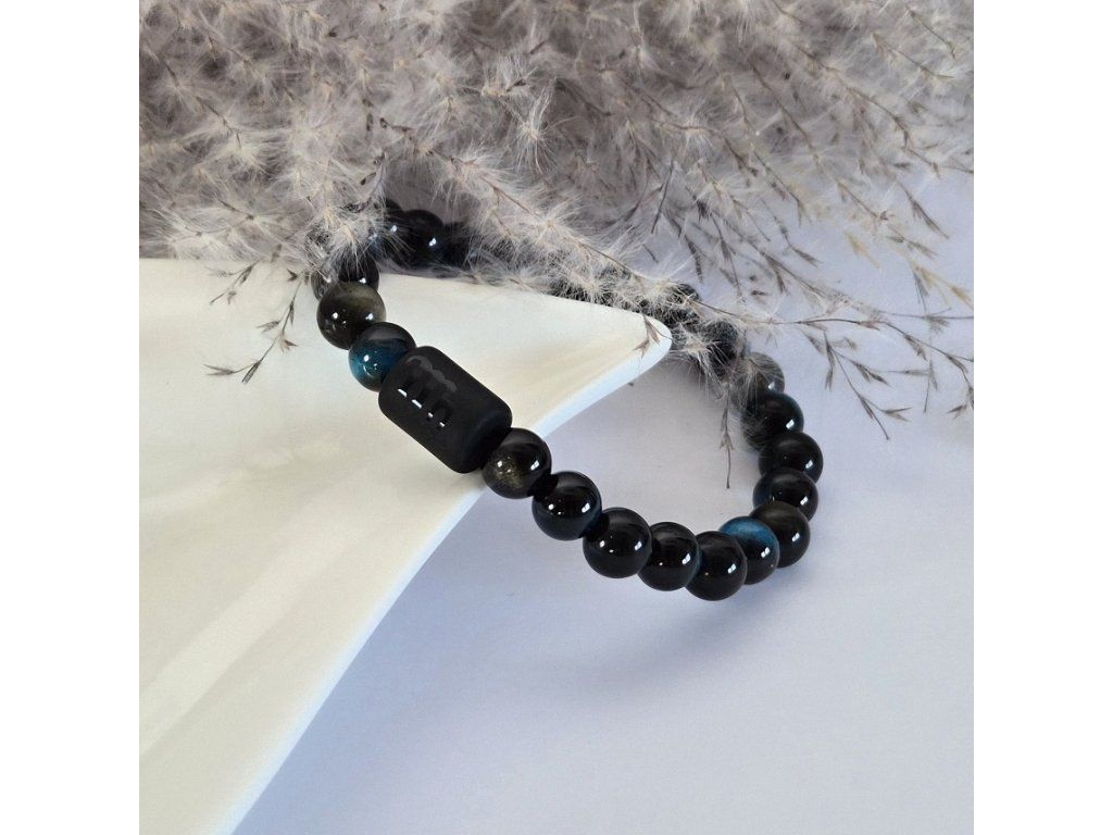 Tento náramek propojuje ochrannou energii obsidiánu s klidnou silou modrého tygřího oka a vytváří výrazný, přesto harmonický šperk pro každodenní nošení.