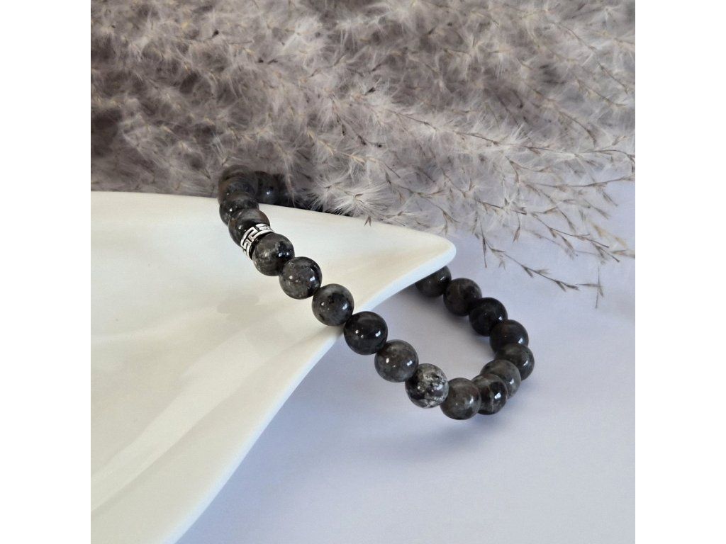 Tento náramek z matného labradoritu je symbolem elegance, klidu a přirozené krásy minerálů.