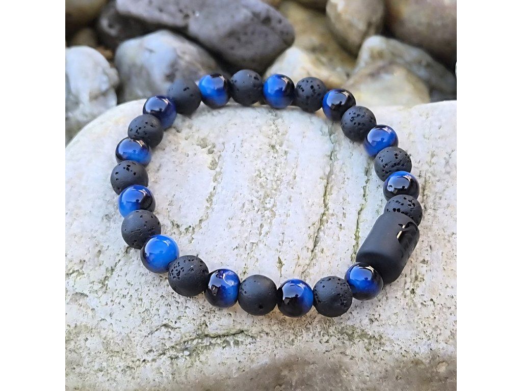 Tento náramek spojuje energii modrého tygřího oka se stabilitou černého přírodního kamene a vytváří výrazný, ale harmonický šperk pro každodenní nošení.