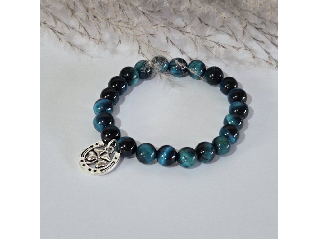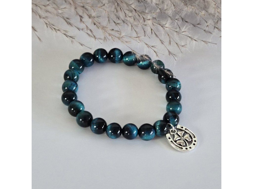 Náramek z modrého tygřího oka s přívěskem podkovičky