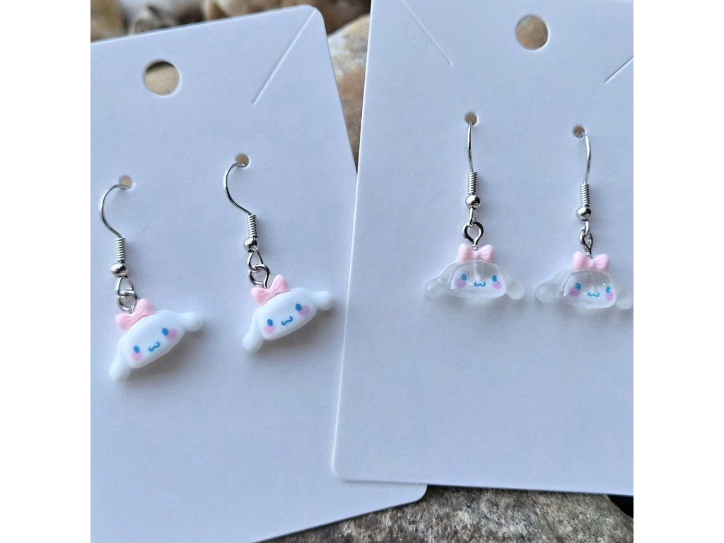 Jemné a hravé náušnice s oblíbeným bílým pejskem s růžovou mašličkou 💗🐶 K dispozici v plné i lehce průsvitné variantě – obě působí něžně a sladce.