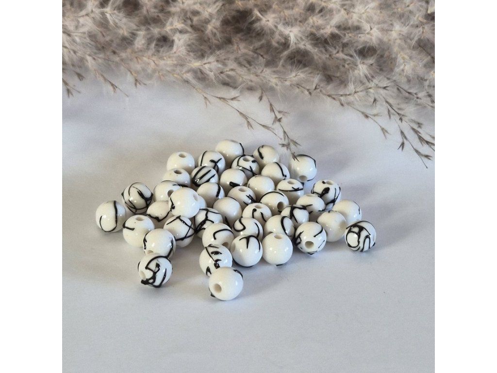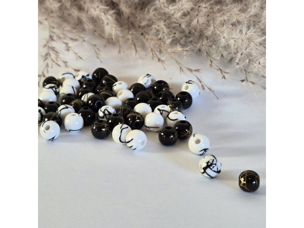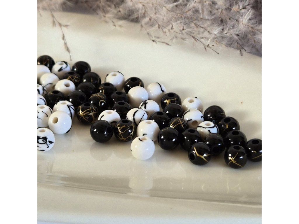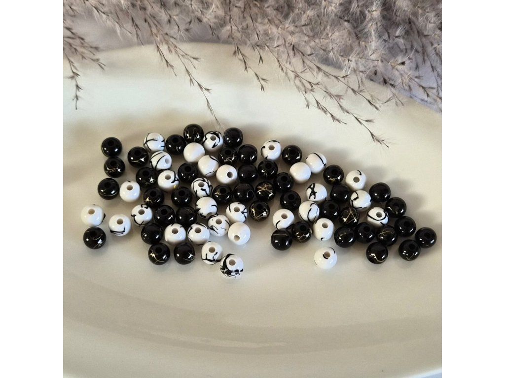PIPIDREAM korálky 8 mm – černo-bílý mix se zlatým drátkovým vzorem