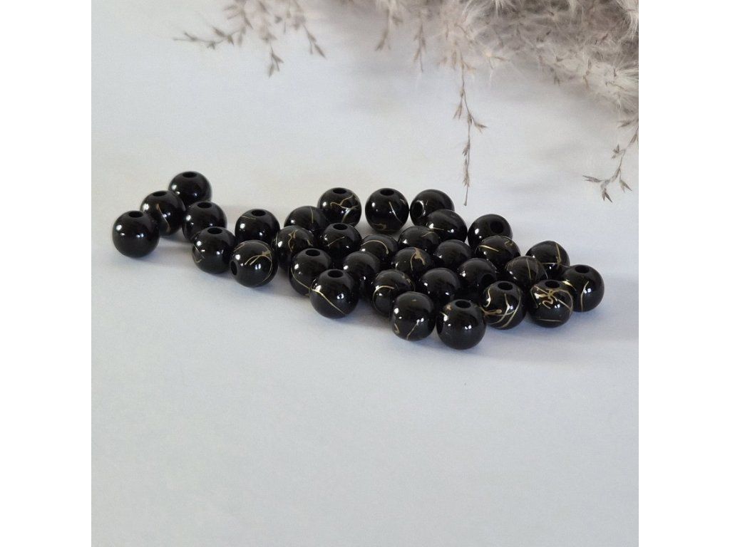 Zlatý vzor je aplikován na povrchu korálku a vytváří nepravidelné, elegantní linie. Každý kus je mírně odlišný, což zaručuje jedinečný vzhled výsledného šperku.