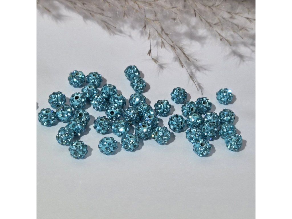 Elegantní korálky s jemným třpytivým povrchem v nádherném tyrkysovém odstínu. Díky drobným kamínkům zasazeným po celém povrchu vytvářejí výrazný krystalový efekt, který krásně odráží světlo a dodává šperkům luxusní vzhled. Tyrkysová barva působí svěže, lehce a zároveň velmi stylově.