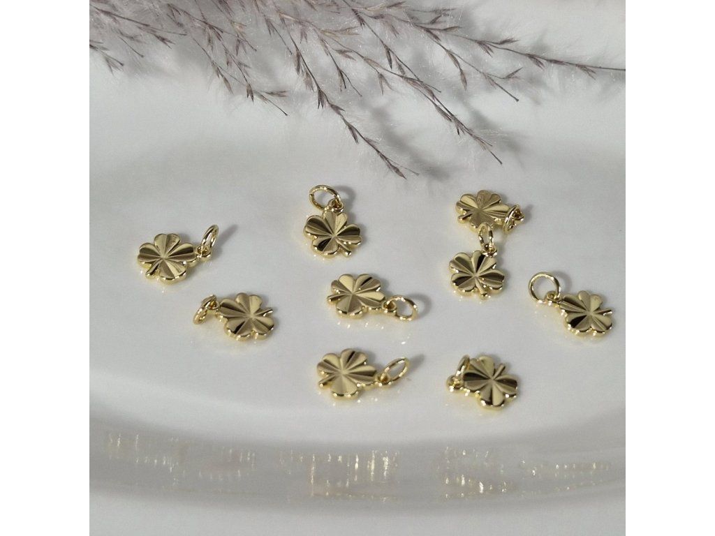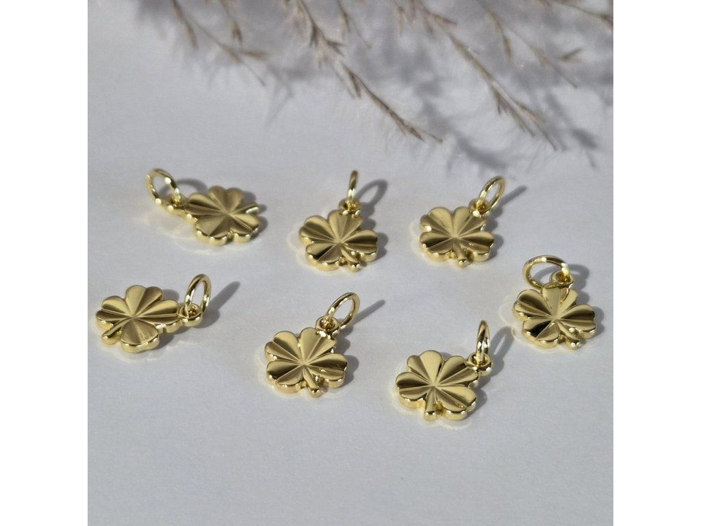 Pozlacený přívěsek čtyřlístek z mosazi 18K (11 × 8 mm)