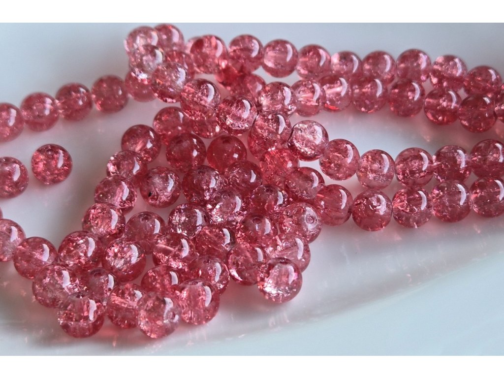Elegantní praskané korálky v korálově červeném odstínu o průměru 8 mm s velikostí průvleku 1,3–1,6 mm.