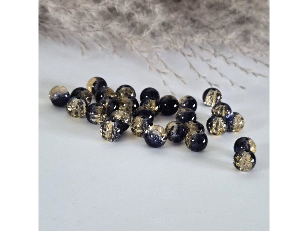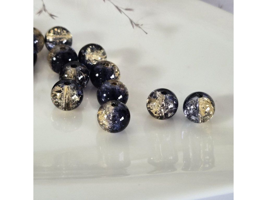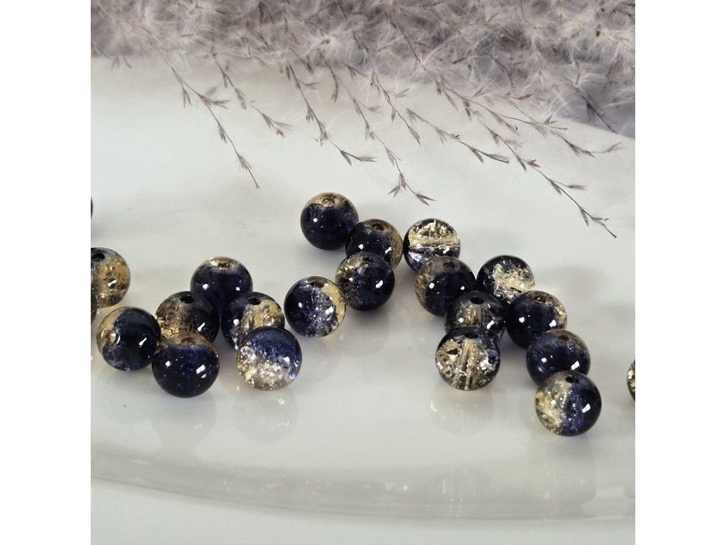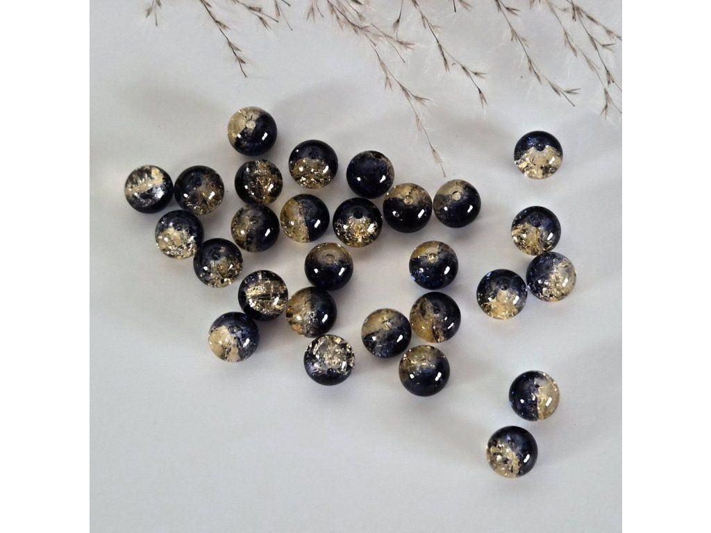 Stylové skleněné korálky s výrazným mramorovaným efektem v kombinaci tmavě modré až černé barvy se zlatavými žíhami. Lesklý povrch a nepravidelná kresba dodávají každému korálku originální vzhled.