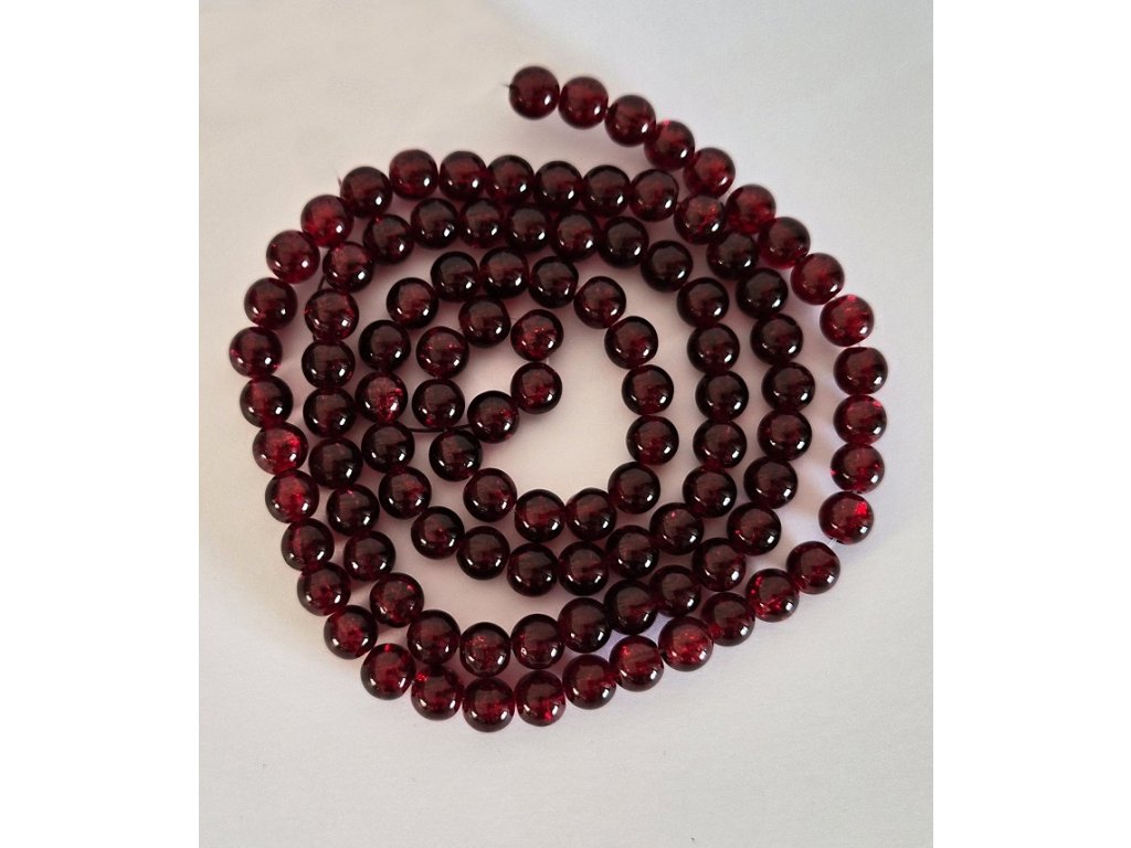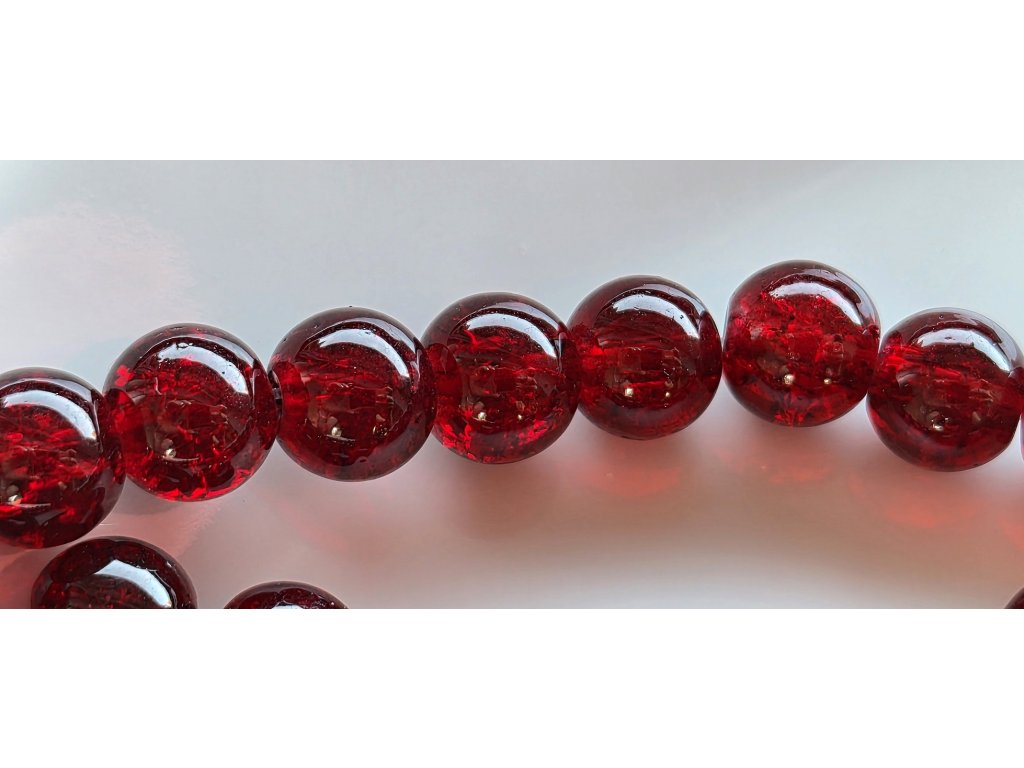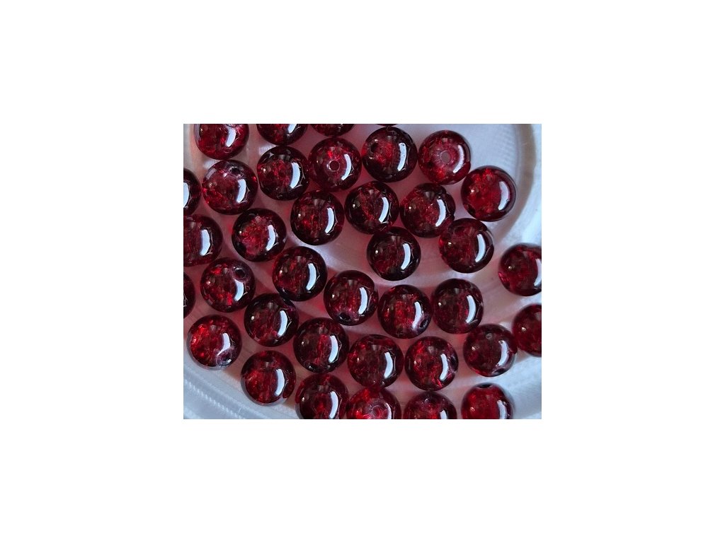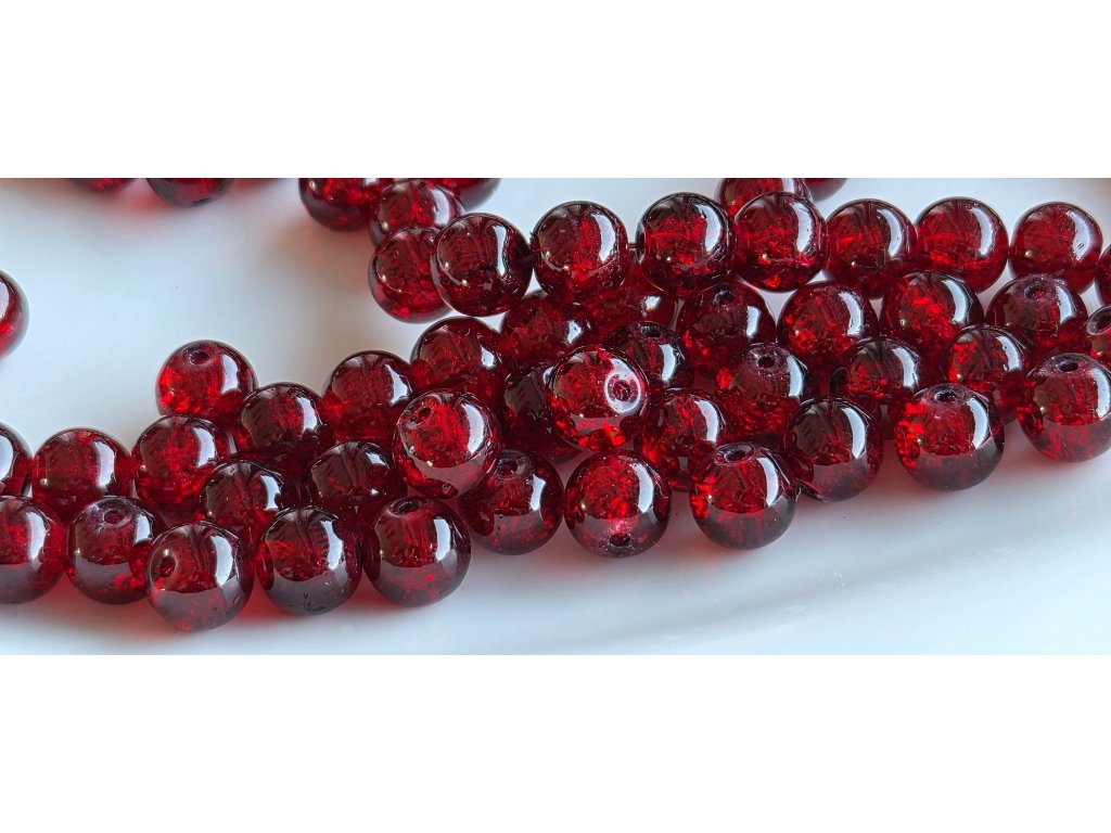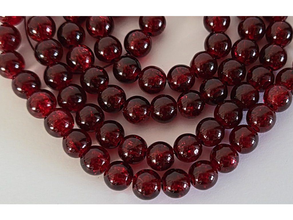 Elegantní praskané korálky v tmavě červeném odstínu o průměru 8 mm s velikostí průvleku 1,3–1,6 mm.
