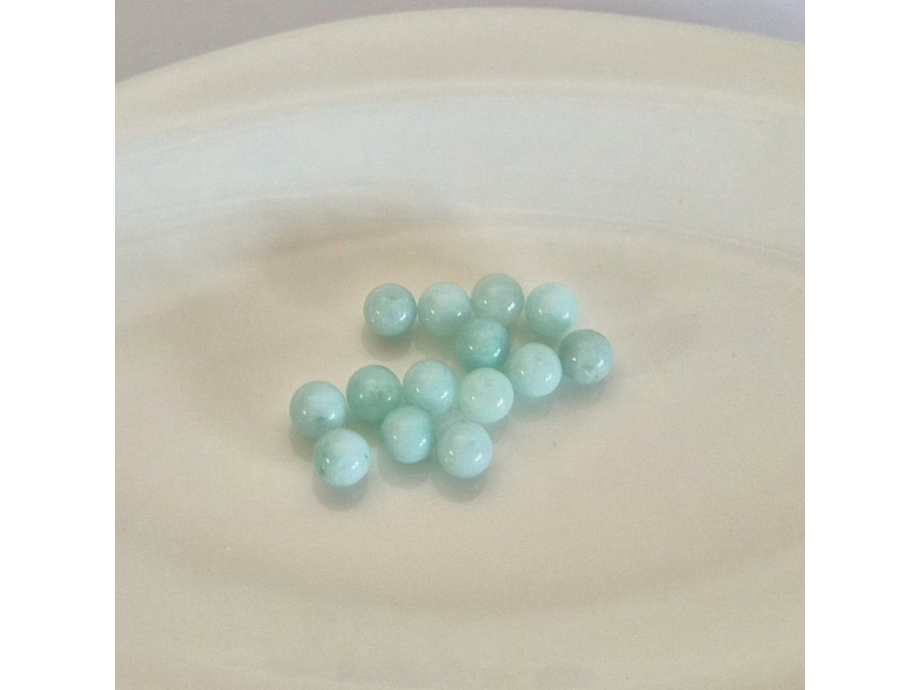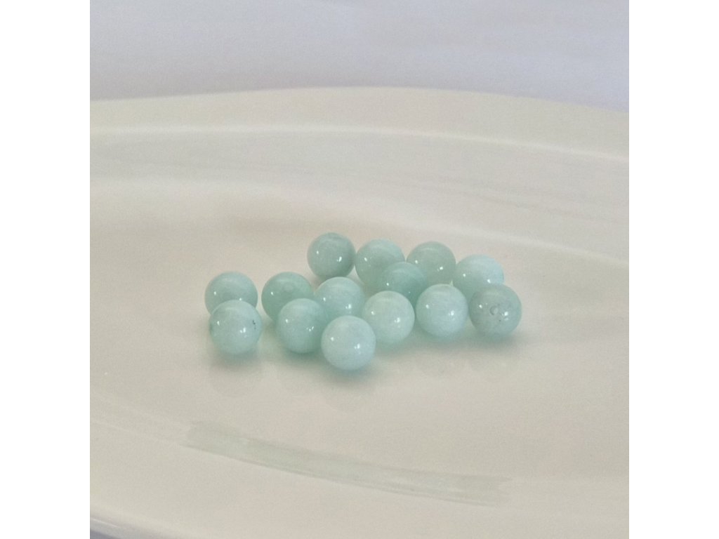 Amazonit je oblíbený pro svou svěží barvu a harmonický vzhled. Leštěný povrch zvýrazňuje hloubku barvy a dodává korálkům jemný lesk.