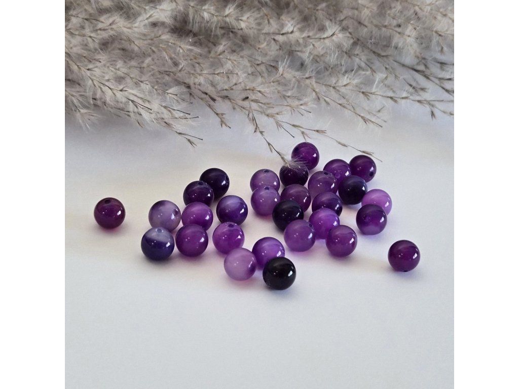 Přírodní fialové pruhované achátové korálky – 8 mm