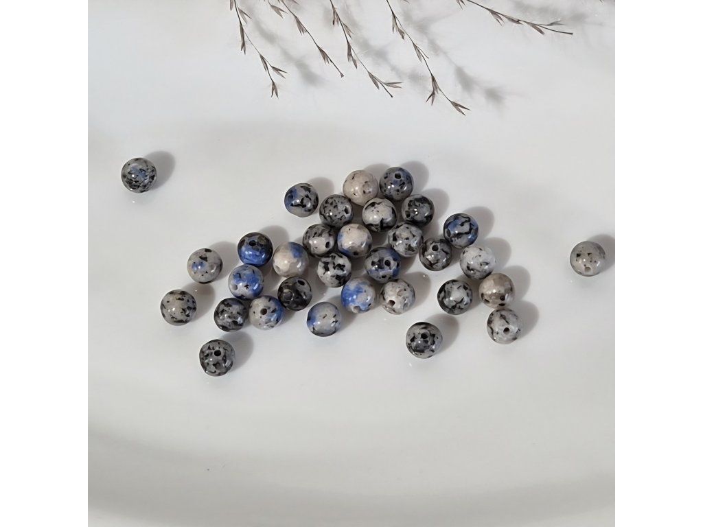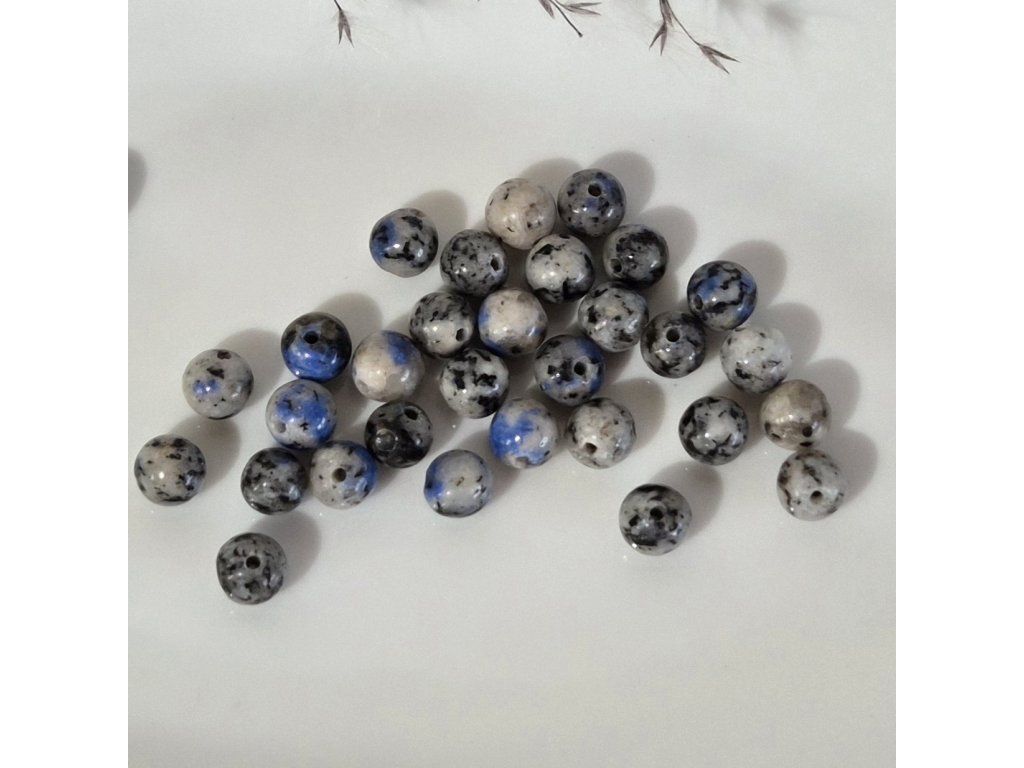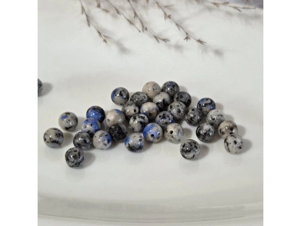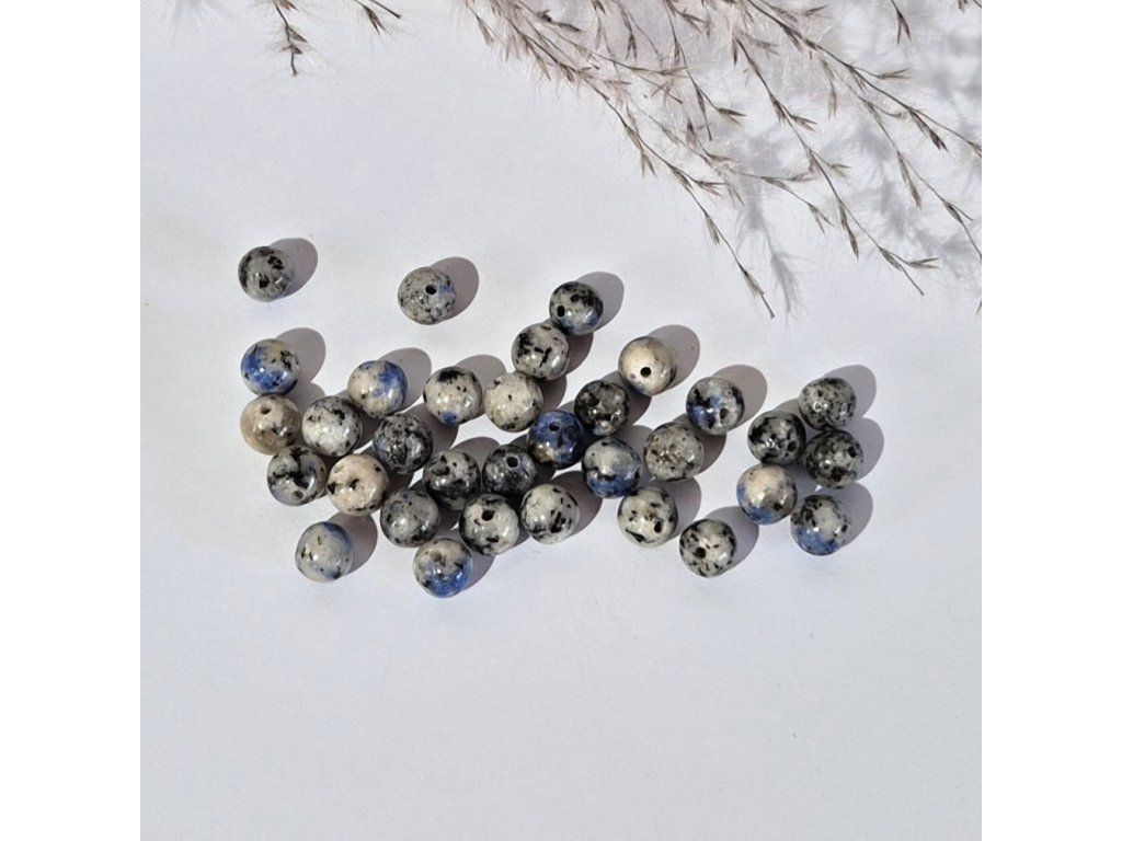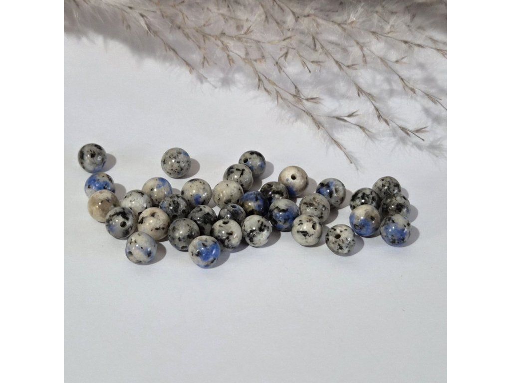 Originální korálky z přírodního kamene K2 granit, známého svou jedinečnou kombinací světlé žuly a výrazných modrých skvrn azuritu. Každý korálek je neopakovatelný a zaujme kontrastní kresbou.