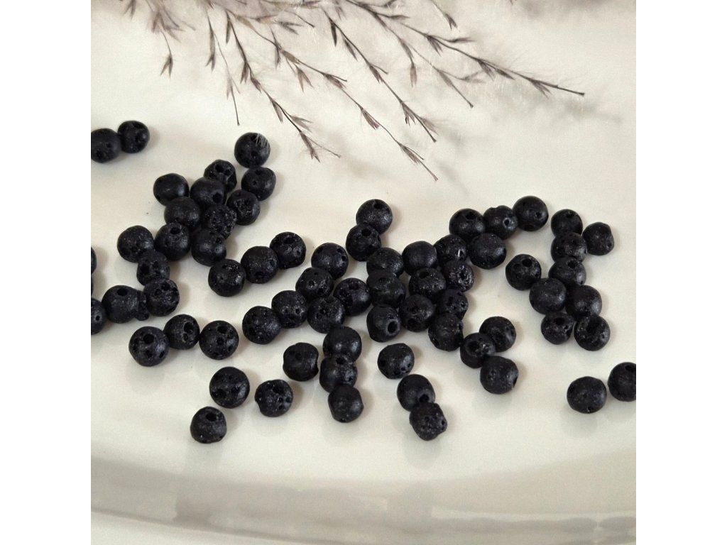 Dekorativní korálky z přírodního lávového kamene v matné černé barvě. Typická porézní struktura vzniklá sopečnou činností dodává korálkům autentický a syrový vzhled inspirovaný přírodou. Každý korálek je jedinečný svou strukturou a drobnými nepravidelnostmi.