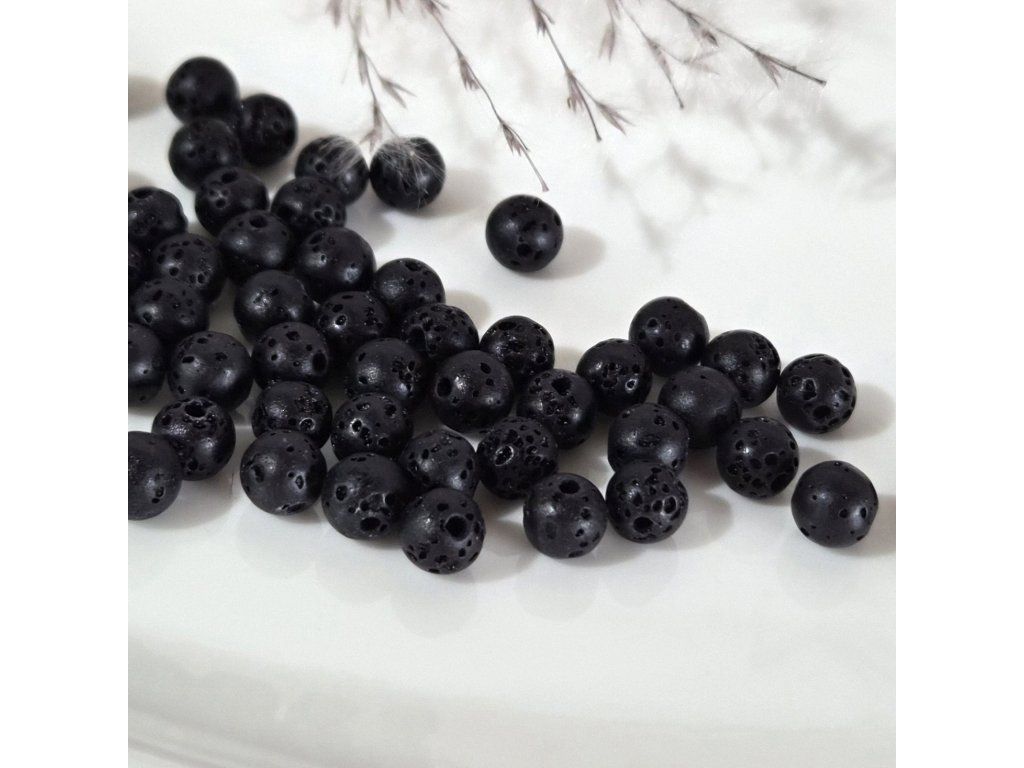 Dekorativní korálky z přírodního lávového kamene v matné černé barvě. Typická porézní struktura vzniklá sopečnou činností dodává korálkům autentický a syrový vzhled inspirovaný přírodou. Každý korálek je jedinečný svou strukturou a drobnými nepravidelnostmi.
