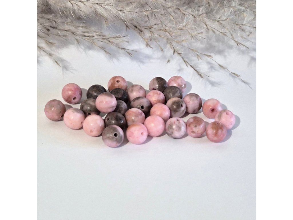 Jemné a stylové korálky z přírodního zebra jaspisu v krásných odstínech růžové doplněné šedými a tmavými akcenty. Matný povrch dodává korálkům moderní, sametový vzhled a podtrhuje jejich přirozenou kresbu.