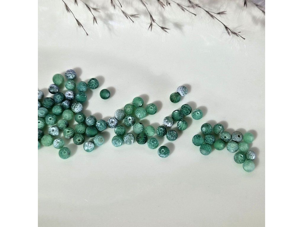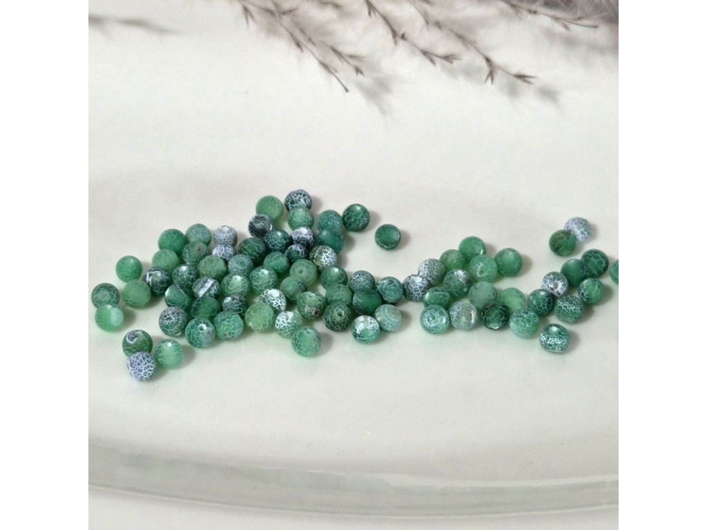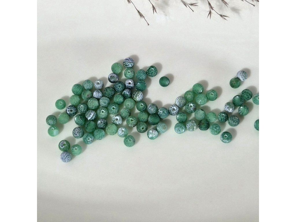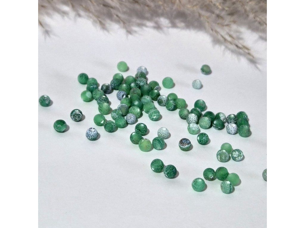 Zelený mrazem praskaný achát o průměru 4 mm je skvělou volbou pro svěží, jemné a originální šperky s výraznou strukturou kamene.