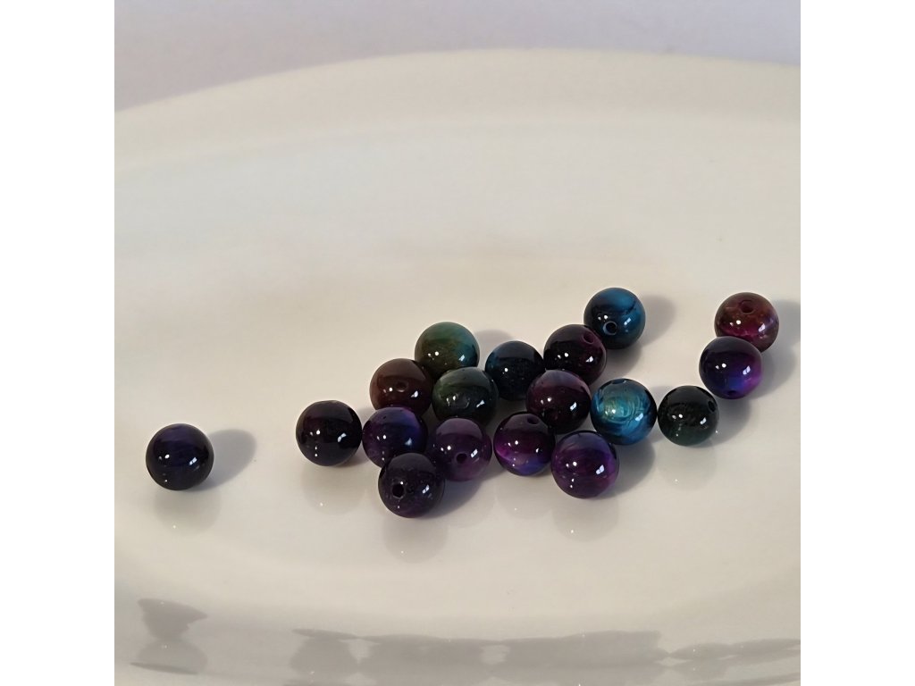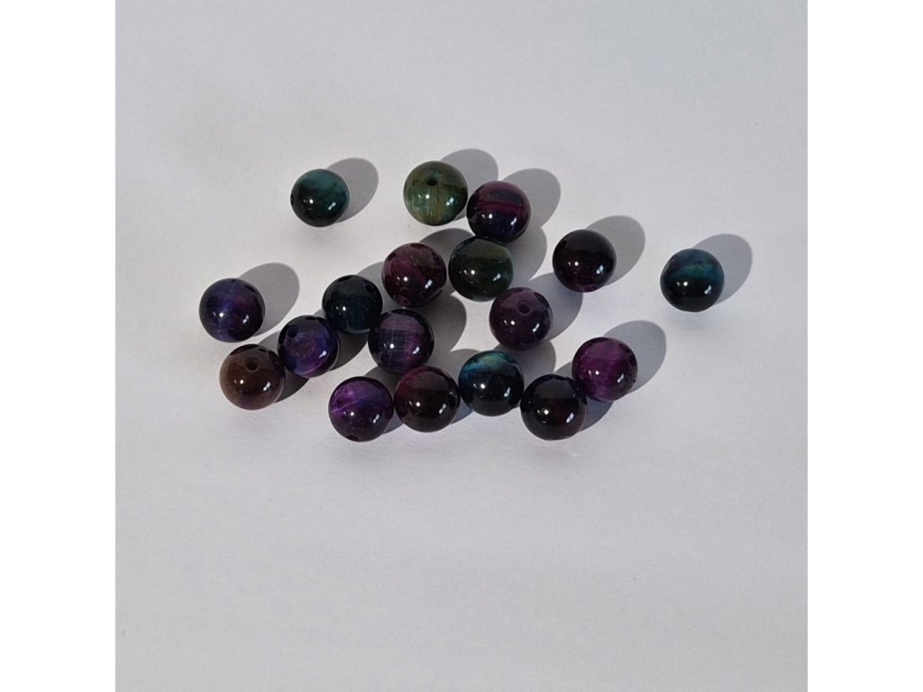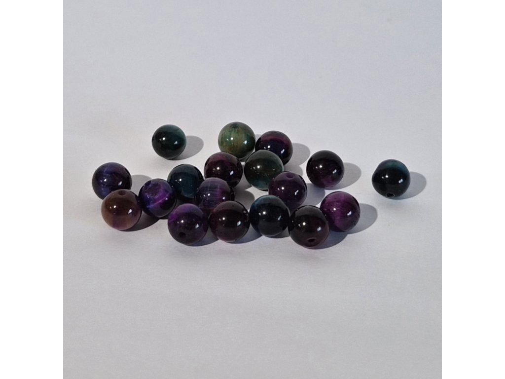 Designové korálky z tygřího oka Galaxy v kulatém provedení, které zaujmou svou výraznou a netradiční barevností. Tento typ je charakteristický hlubokými odstíny modré, fialové, zelené a vínové, které společně vytvářejí efekt noční oblohy – odtud název „Galaxy“.