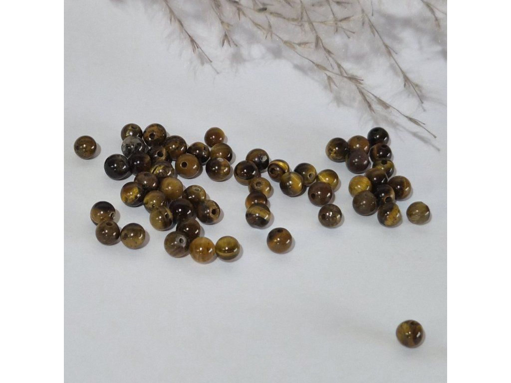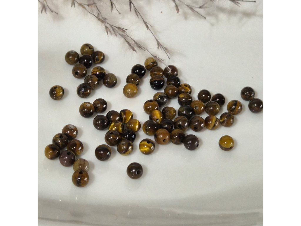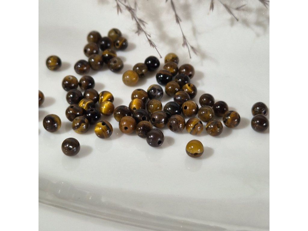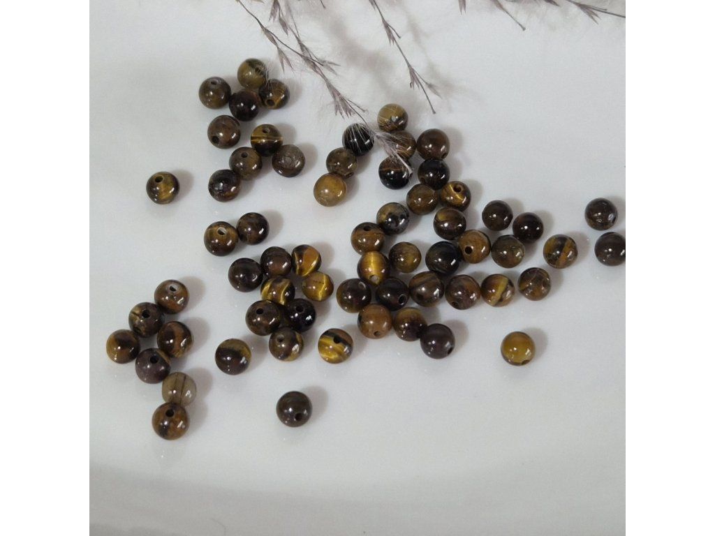 Dekorativní korálky z přírodního tygřího oka v teplých odstínech hnědé, zlaté a medové. Typický hedvábný lesk a jemné pruhování vytváří charakteristický „kočičí efekt“, který se při pohybu světla krásně mění. Každý korálek má originální kresbu a jedinečný vzhled.