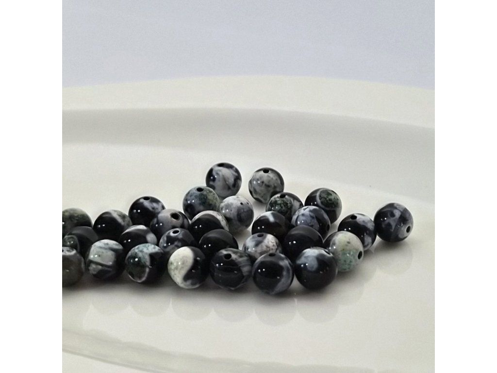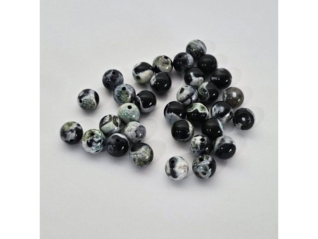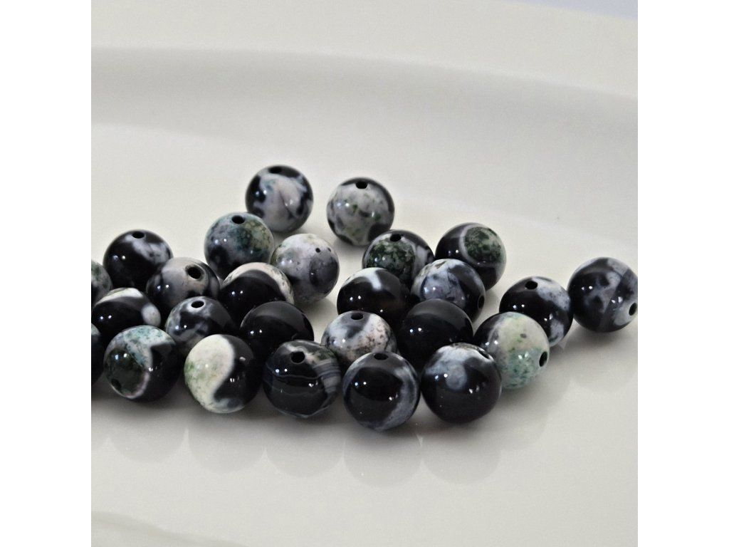 Exkluzivní korálky z přírodního zeleného ohnivého achátu, který zaujme svou jedinečnou kresbou a hloubkou barev. Kombinace tmavých, šedých a zelených tónů vytváří originální, nepravidelné vzory – každý korálek je naprostý originál.