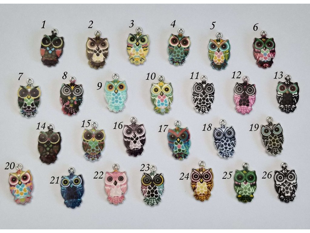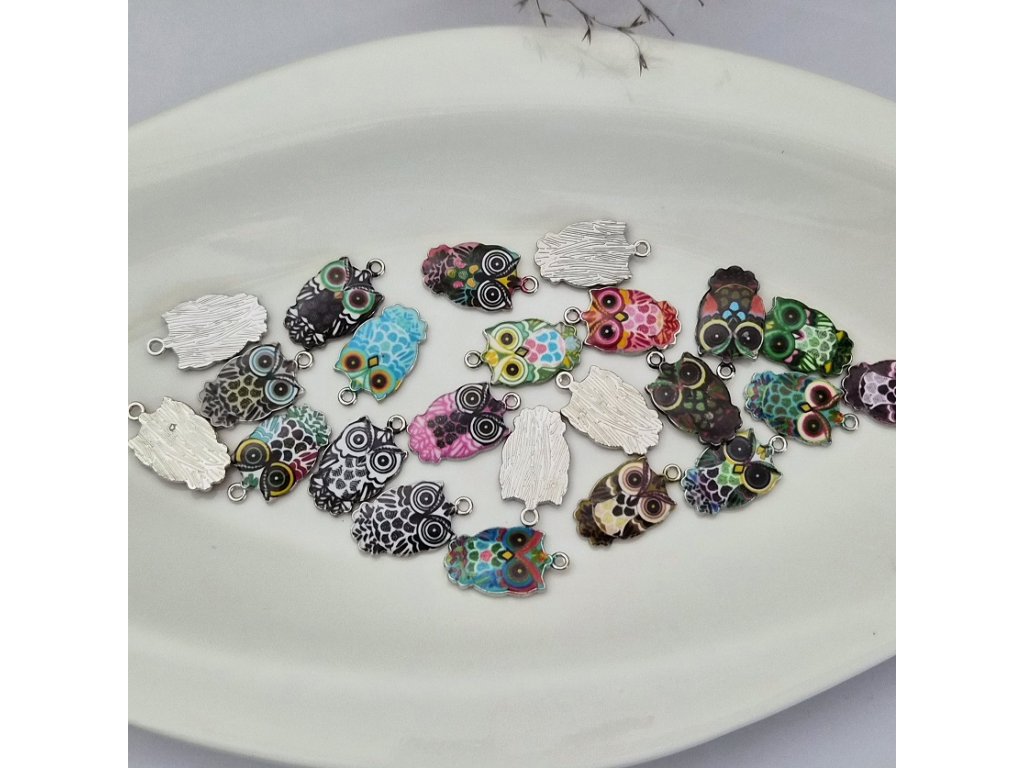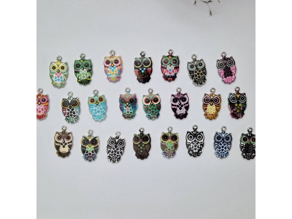 Originální kovový přívěsek ve tvaru sovy zaujme pestrými barvami a detailním zpracováním. Každý kousek má výrazné oči, propracované peří a smaltovanou výplň v různých barevných kombinacích. Ideální komponent pro výrobu náušnic, náhrdelníků, náramků nebo klíčenek.