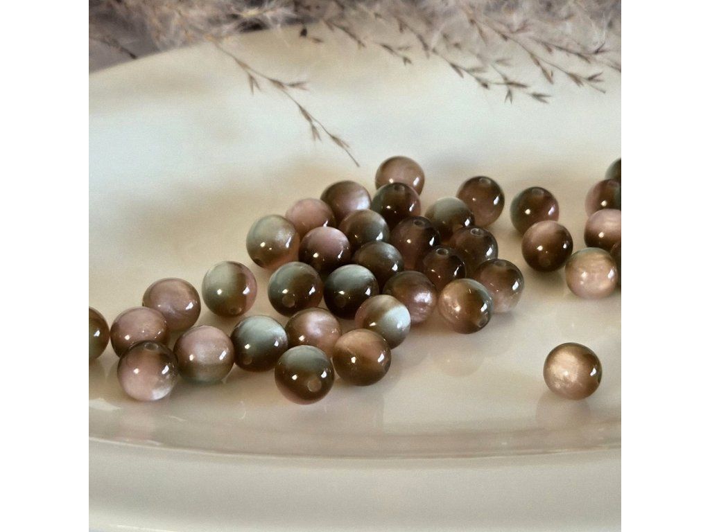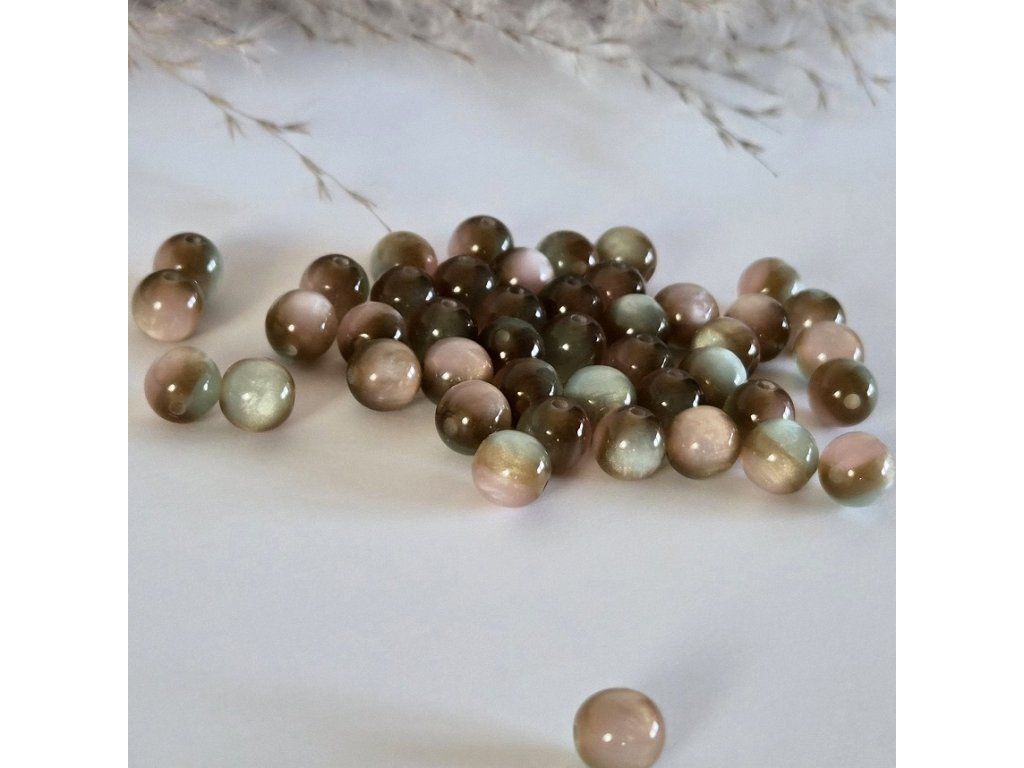 Pryskyřičné korálky – přírodní pastelový mix s efektem kočičího oka - ø 8 mm - 10 ks