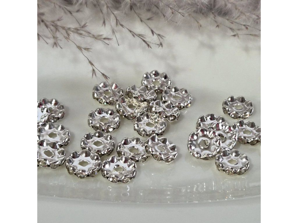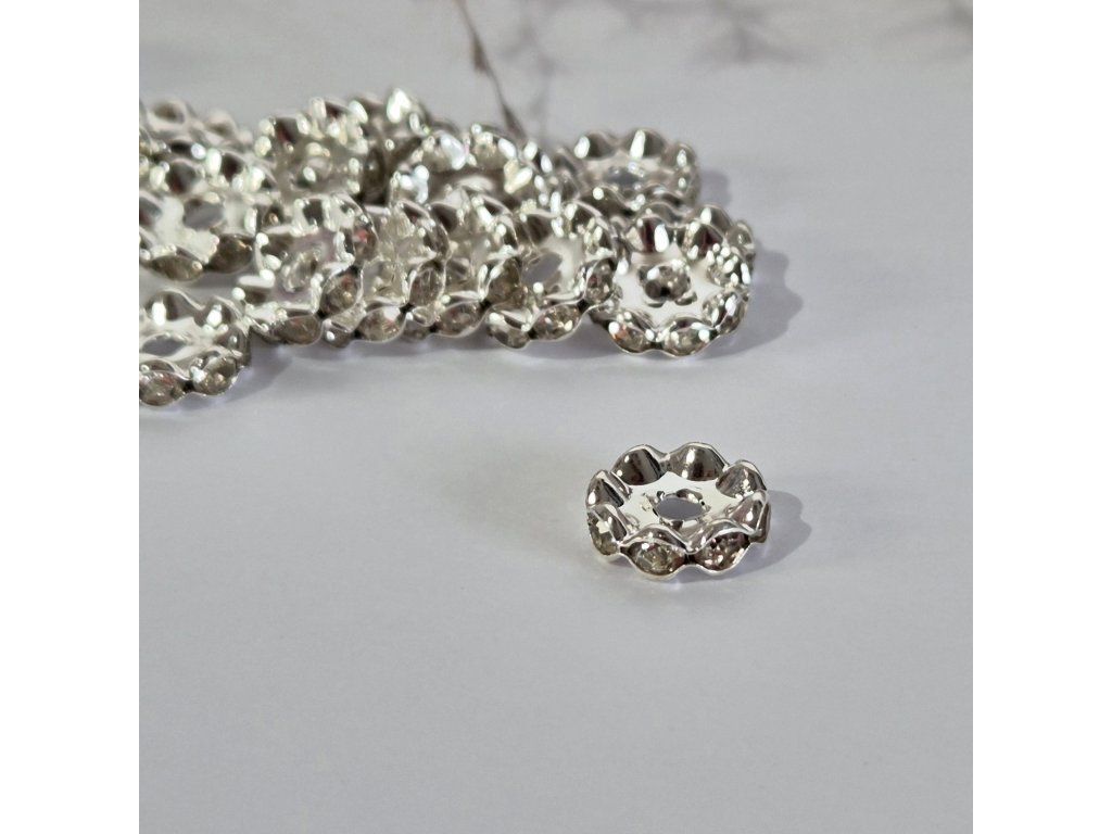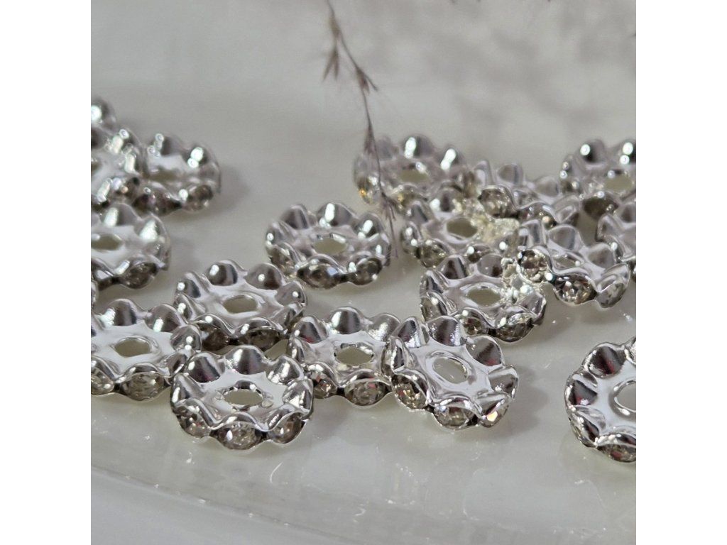 Elegantní kovové rondelky s jemně vlnitým okrajem a vsazenými kamínky dodají vašim šperkům luxusní a třpytivý vzhled. Jsou ideální jako oddělovací korálky i výrazný dekorativní prvek.