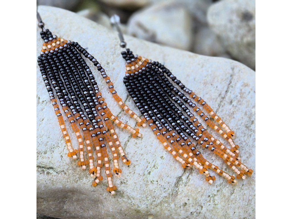 Ručně šité třásňové náušnice z korálků MIYUKI 11/0 – černo-růžové