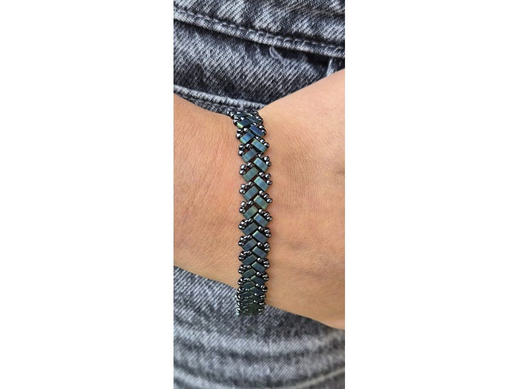 Elegantní náramek v hlubokých, tajemných tónech vytvořený z originálních MIYUKI korálků, které vynikají svou precizností a dokonalou pravidelností. Díky tomu má šperk čistou linii, pevnou strukturu a profesionální vzhled.
