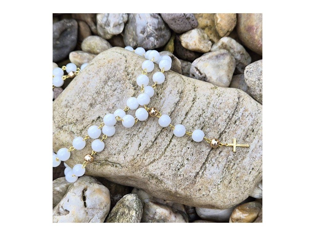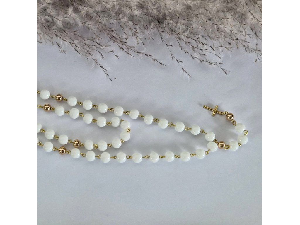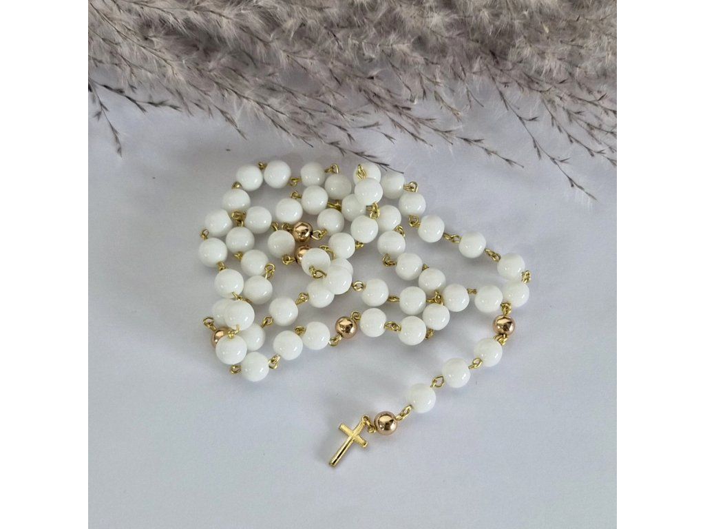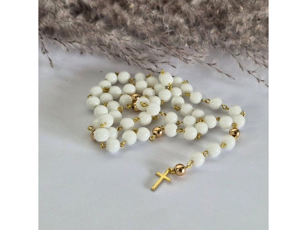 Elegantní růženec do auta v jemné bílo-zlaté kombinaci 🤍✨ Symbol víry a ochrany na každou cestu.