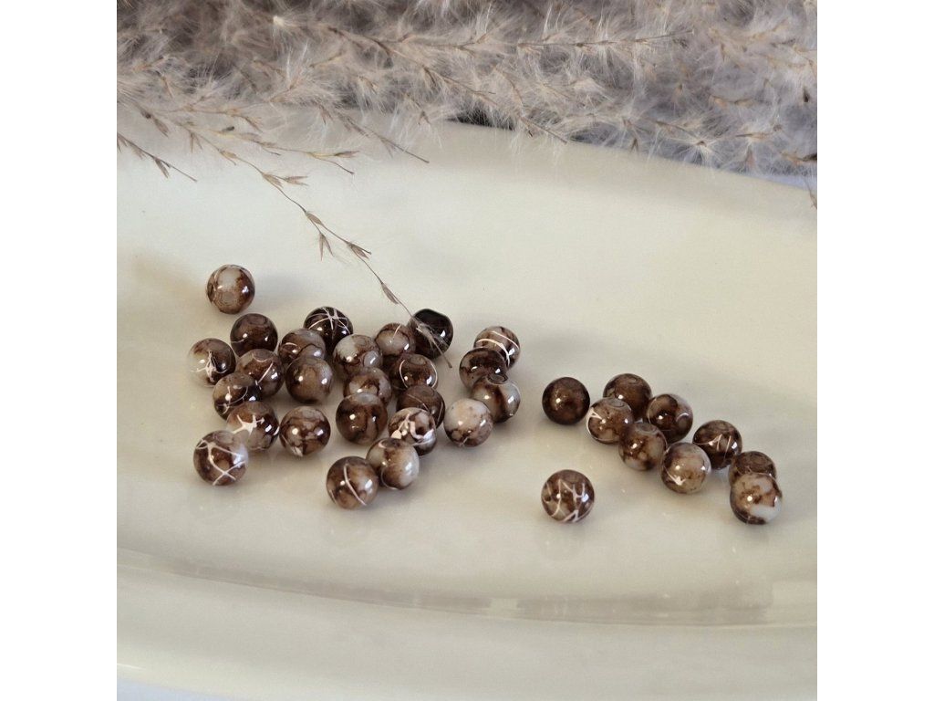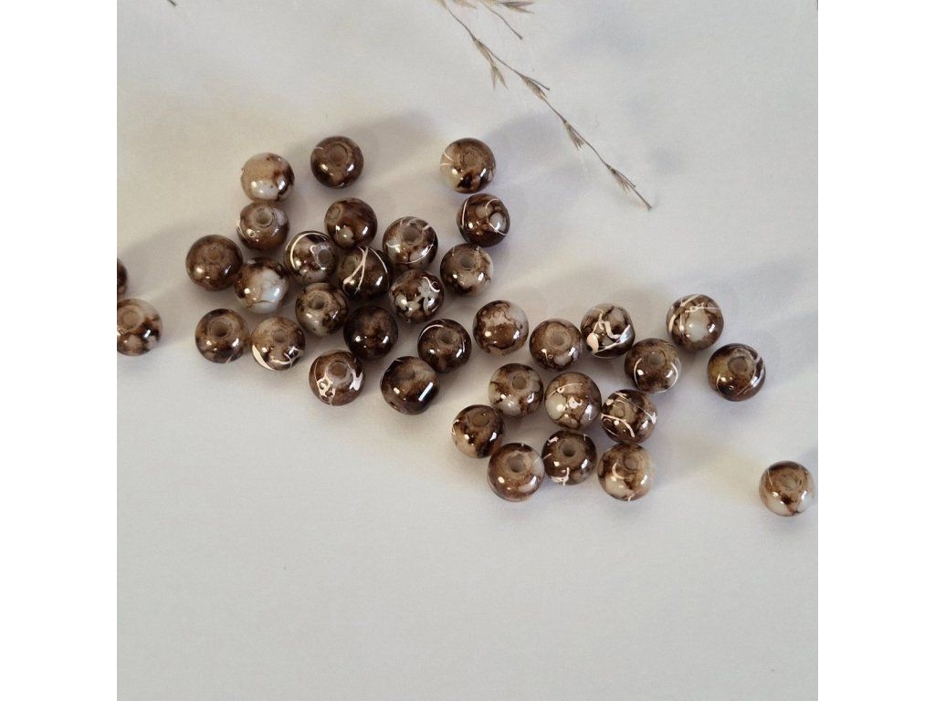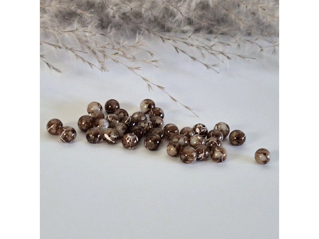 Skleněné dvoubarevné mramorované korálky – hnědo-béžové (6 mm)