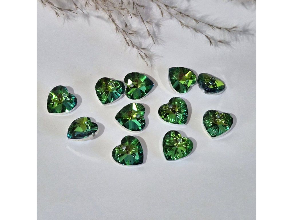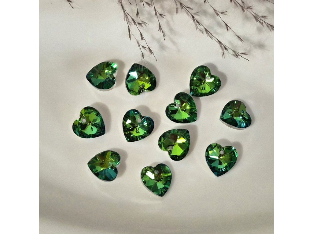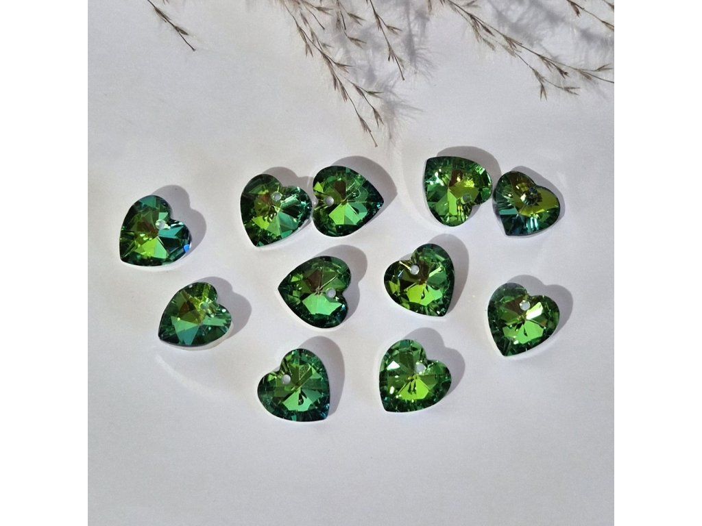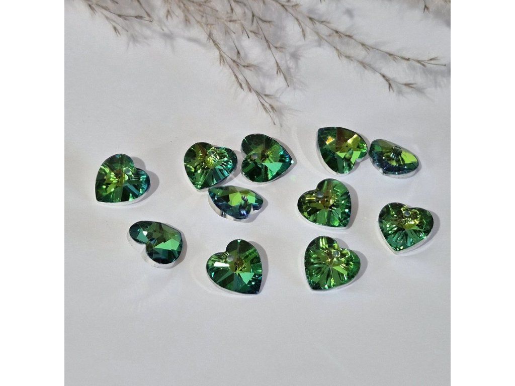 Skleněné kamínky s AB efektem – zelené srdce 14 mm