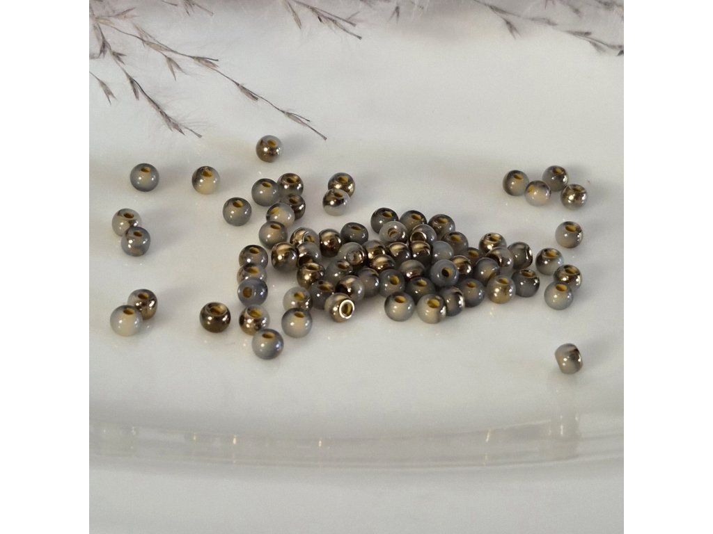Skleněné korálky 6/0 (4 mm) – béžovo-šedo-zlaté